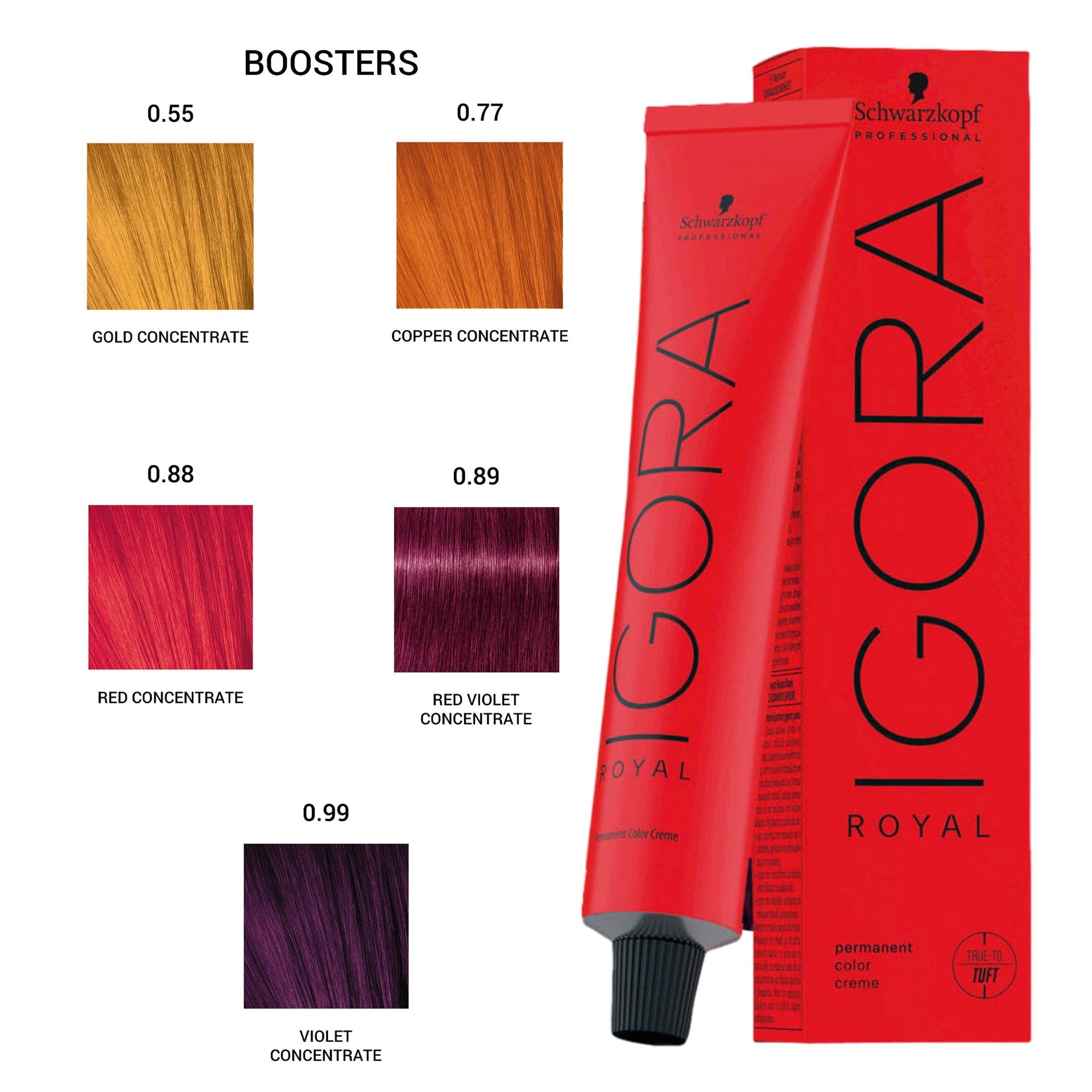 - Purpose: To be mixed with other IGORA ROYAL permanent hair colours to boost intensity, add tonal direction, or neutralise unwanted reflects. Not for use alone.