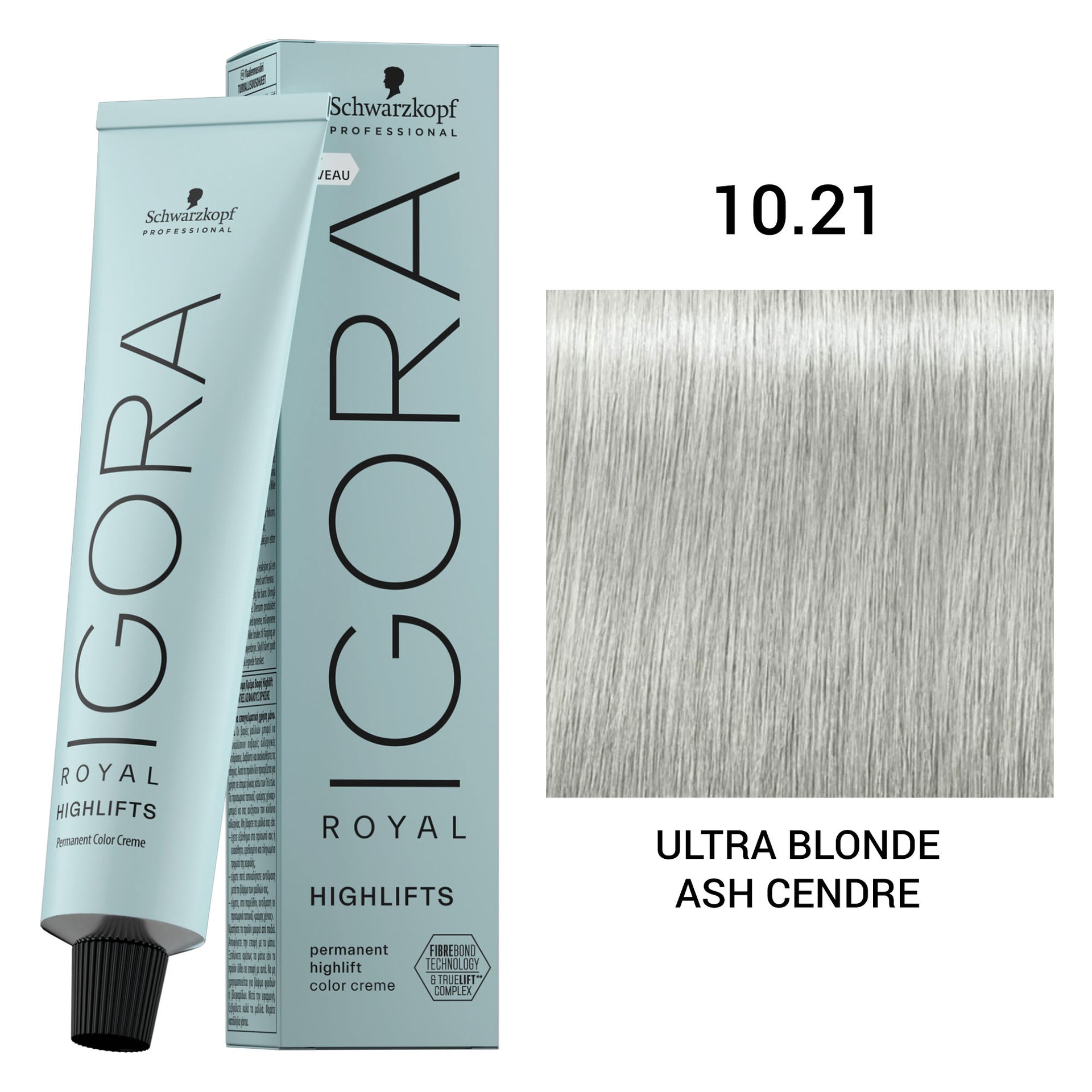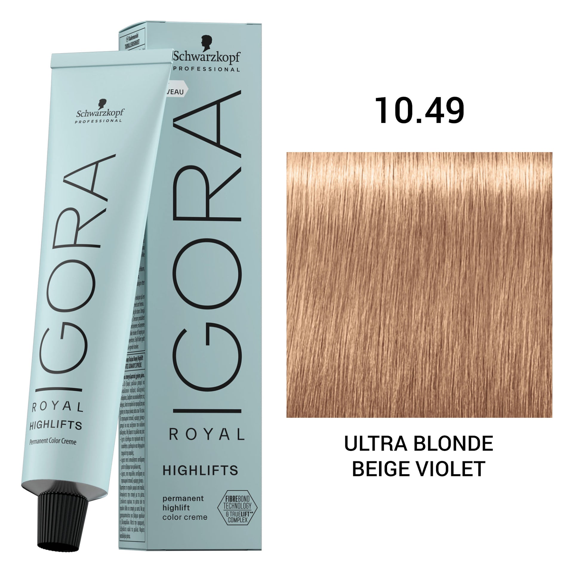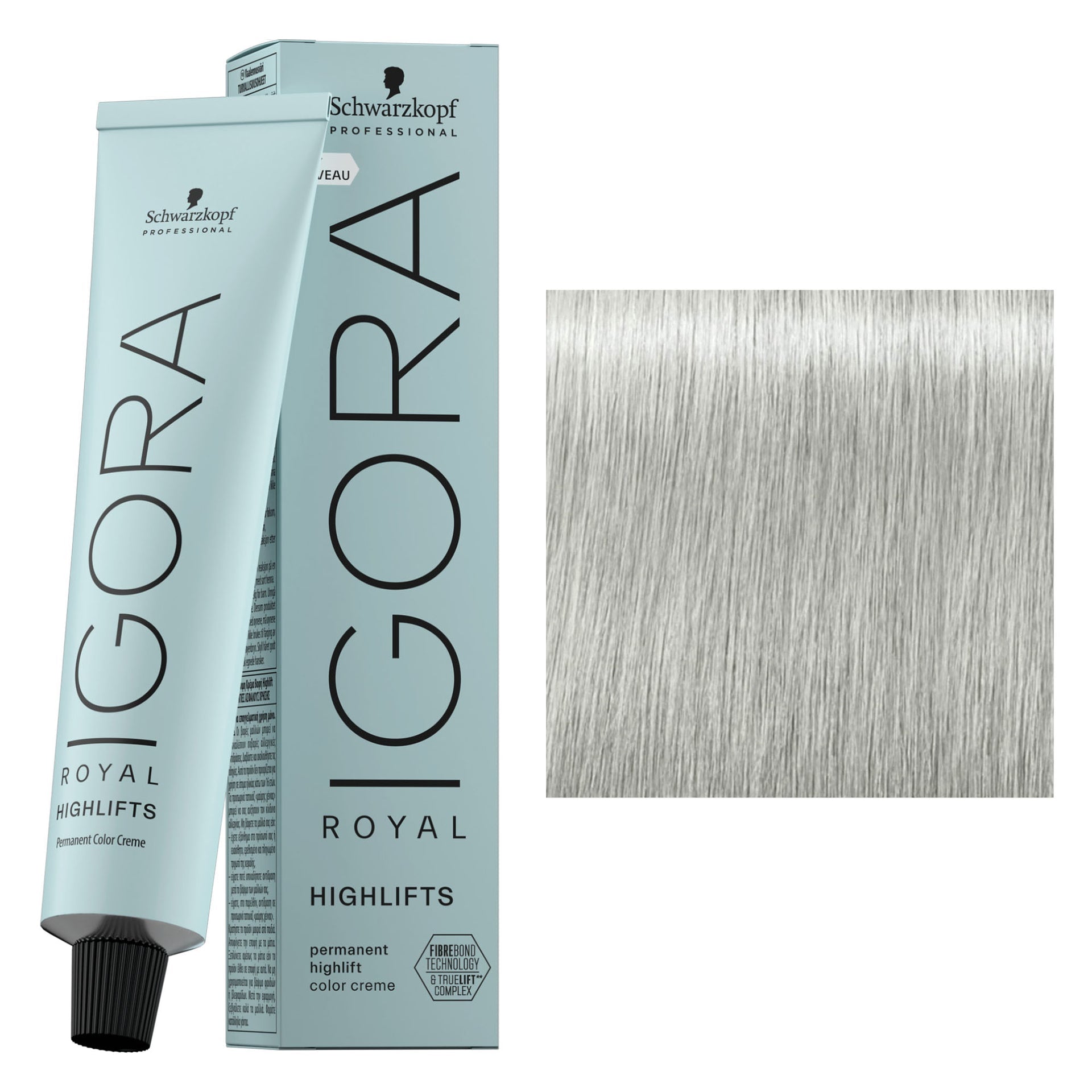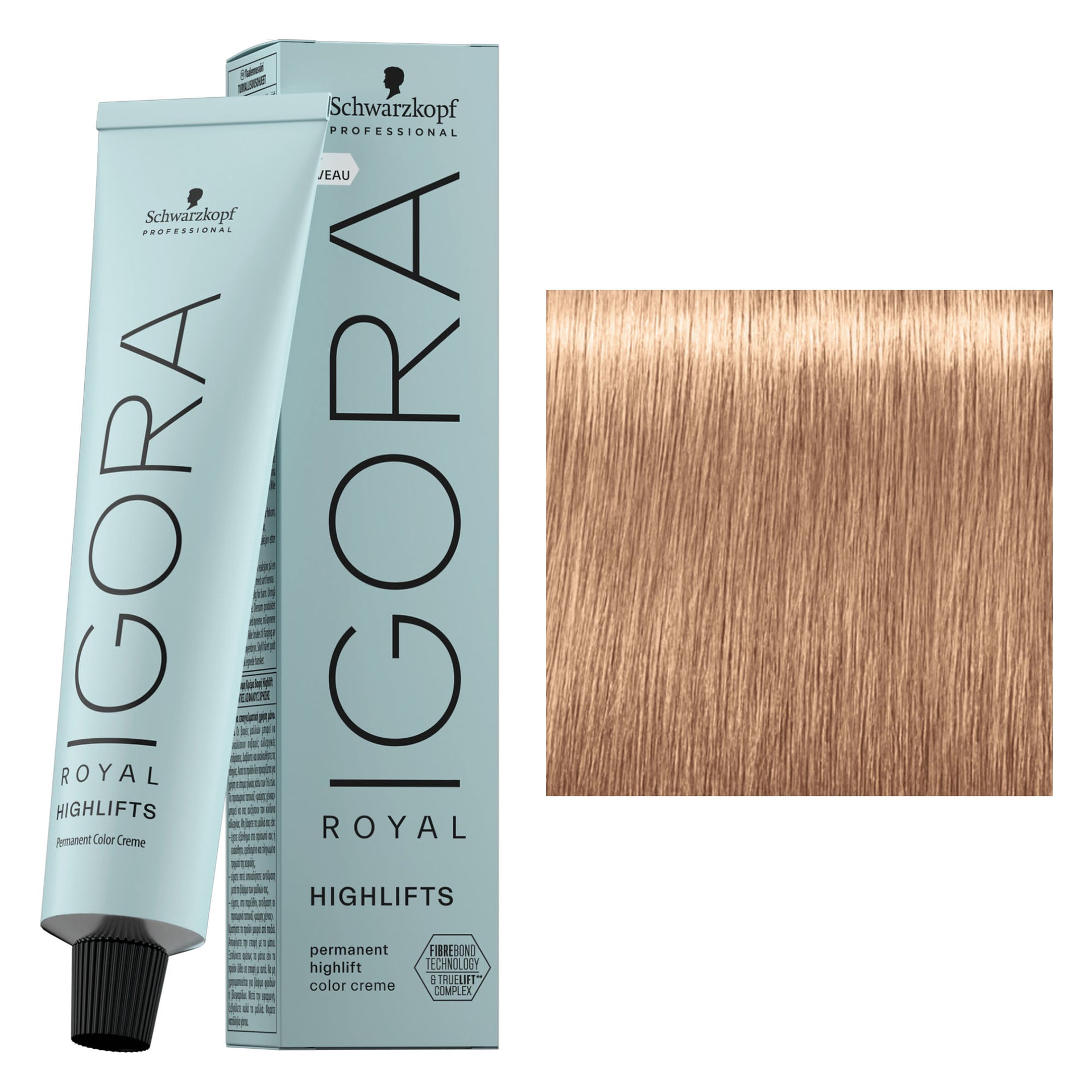 For professional use only. Mix the IGORA ROYAL Highlifts Permanent Hair Colour creme with the appropriate IGORA ROYAL Oil Developer (typically 9%/30 Vol. or 12%/40 Vol., sold separately) in the recommended ratio. Apply the mixture evenly to dry, unwashed hair, process according to the specific instructions for the chosen shade and desired lift, then rinse thoroughly.