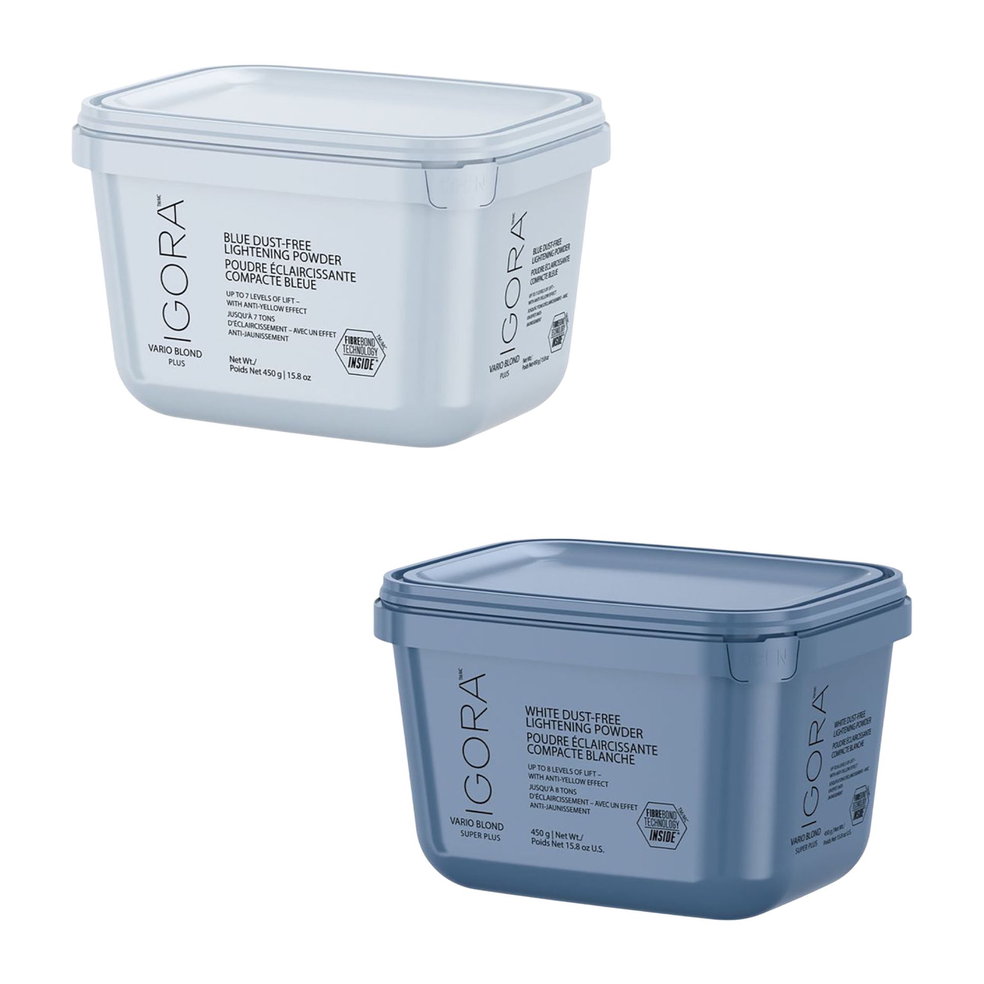 This variant offers options to suit your specific lightening needs: the **Igora Vario Blond Plus** Powder Lightener provides up to 7 levels of lift, while the **Igora Vario Blond Super Plus** Powder Lightener delivers an impressive up to 8 levels of lift for more demanding transformations. Both formulations within the **Igora Vario Blond** system are designed to be used with IGORA ROYAL Oil Developers for optimal performance, allowing you to achieve beautifully clear and healthy-looking blonde hair.