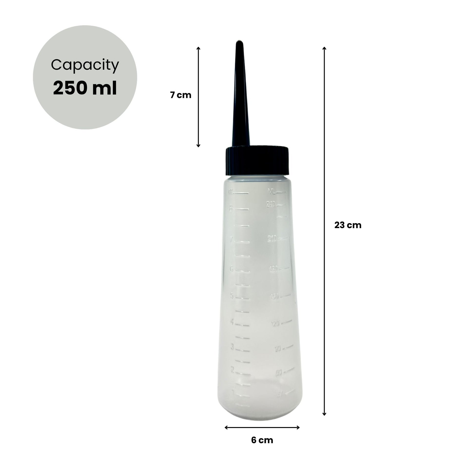 - Precise dual-scale measurement markings (ml/oz) on the transparent bottle enable accurate mixing of colours and developers.