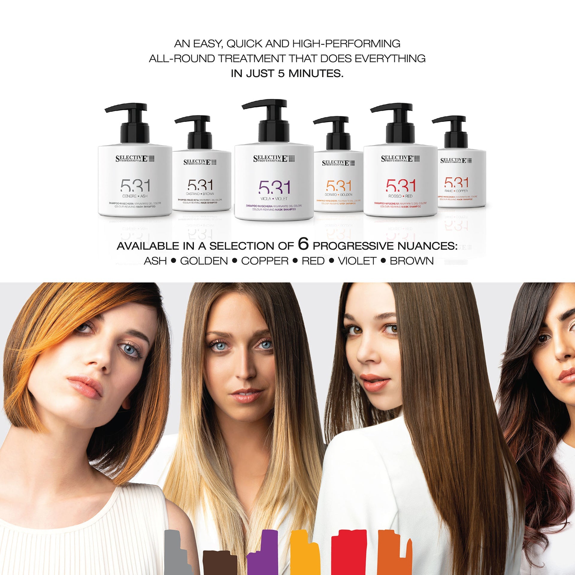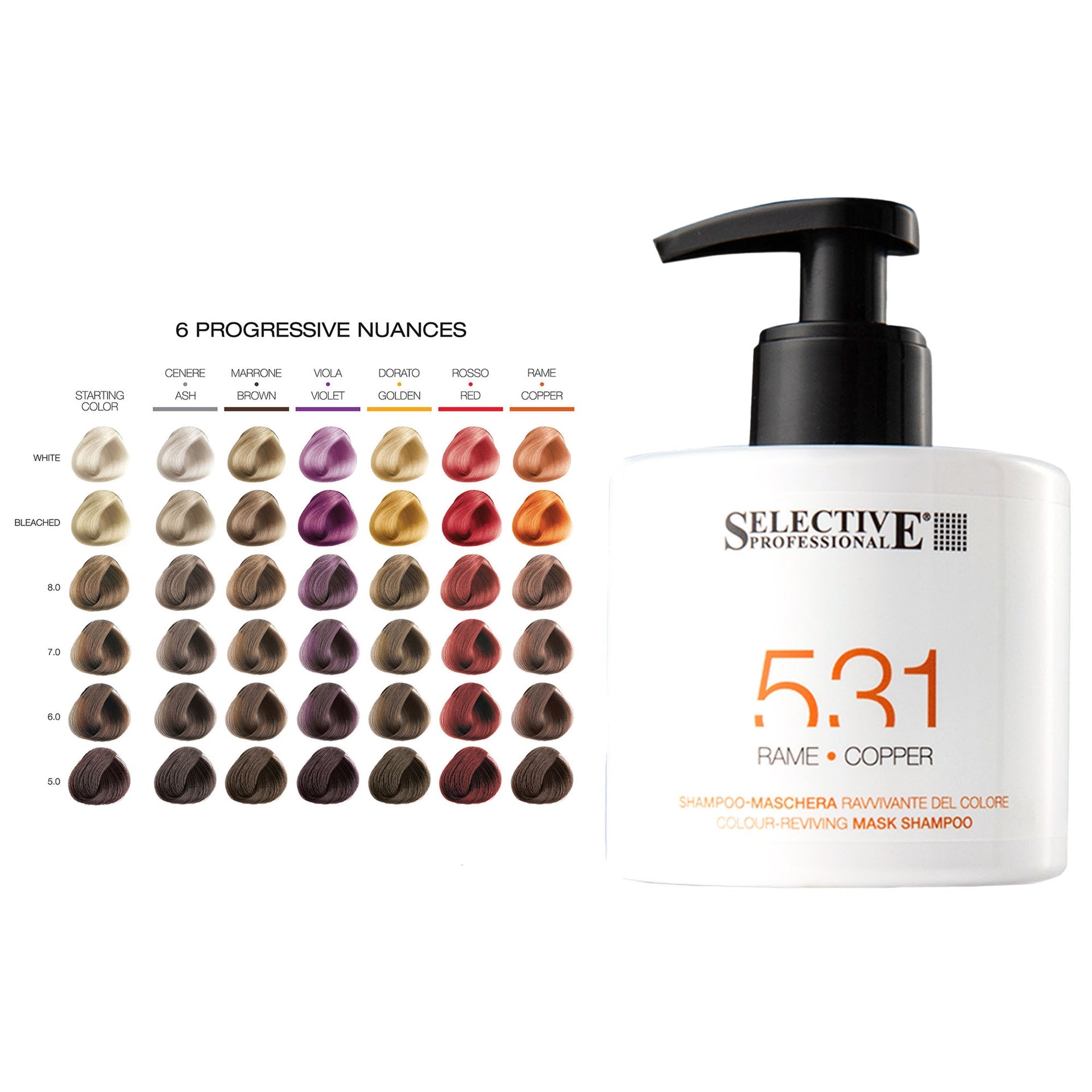 This versatile product is available in six progressive shades, catering to a variety of hair colours and tones. Whether you need to enhance brown, blonde, red, or copper hues, or maintain cool ash or vibrant purple shades, the Selective Professional 531 Colour Care Mask Shampoo ensures long-lasting, radiant results. Its creamy, mask-like texture provides a luxurious feel, while its gentle surfactants make it suitable even for sensitive scalps. Designed to be quick and effective, it is perfect for both daily use and between technical colour treatments, ensuring your hair stays vibrant, healthy, and full of life.