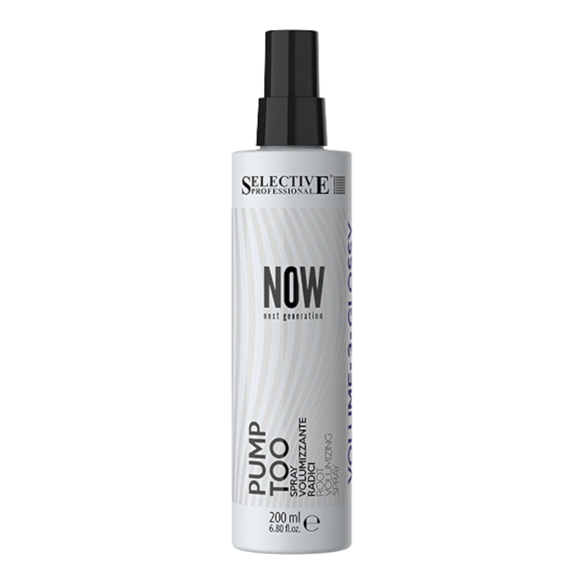 The Selective Professional - Now Pump Too Root Volumising Spray Volume 3 Glossy is a high-performance styling spray designed to create instant root lift and lasting volume. Specially formulated for fine or flat hair, this advanced spray provides a visible push-up effect at the hair roots, adding fullness without weighing the hair down. Its exclusive Colour Shield technology, enriched with brown seaweed extract, forms a protective barrier against external factors such as UV rays, pollution, and oxidative stress, keeping your hair soft, shiny, and healthy. Infused with provitamin B5, also known as panthenol, it deeply hydrates and restores flexibility, ensuring your hair remains glossy and full of vitality. The lightweight formula is ideal for preparing hair for styling, offering a firm yet natural hold with a strength index of 3 out of 6. Whether you're creating everyday styles or more dramatic looks, this volumising spray delivers professional-quality results with ease.