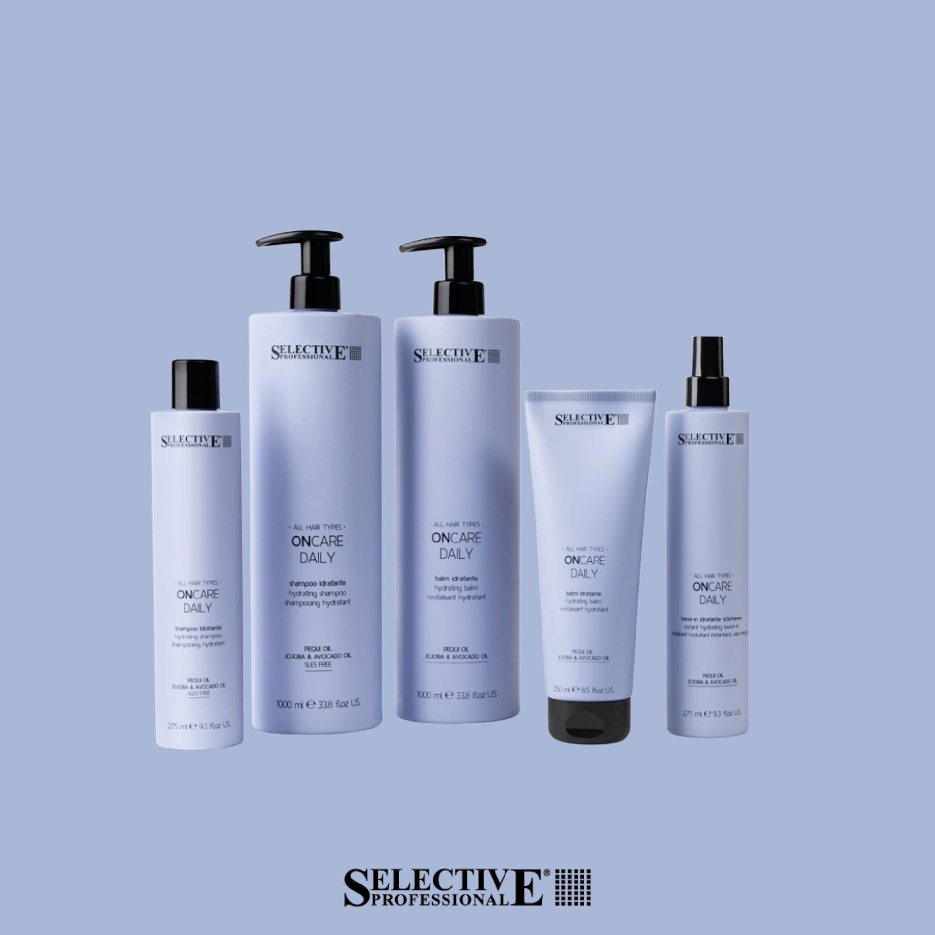 The Selective Professional OnCare Daily Hydration Shampoo is expertly formulated to suit all hair types, from the finest to the most fragile. Its deeply hydrating properties nourish and strengthen the hair structure while keeping it soft and manageable. Ideal for frequent use, this lightweight shampoo ensures that even dry or lifeless hair remains hydrated without being weighed down. Enriched with a blend of natural oils, including pequi, jojoba, and avocado, it delivers essential nutrients to the hair, helping to combat dryness, thinning, and weakness.