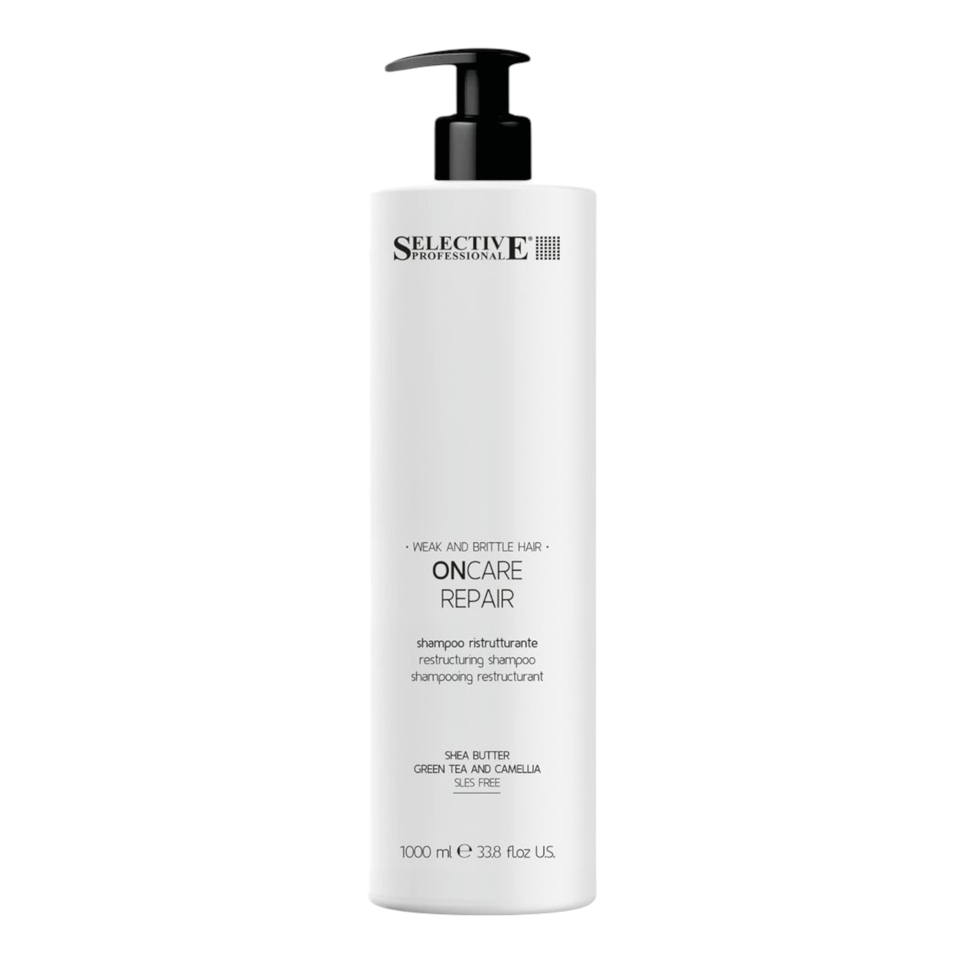 The Selective Professional OnCare Repair Shampoo is expertly formulated to repair and revitalise damaged, weak, and porous hair. Its nourishing ingredients cleanse gently while deeply restoring the hair fibres, making it ideal for brittle and sensitive hair that is prone to breakage. Free from sulphates (SLS and SLES), this shampoo respects the natural structure of the scalp and hair, providing hydration without compromising on cleanliness. Enriched with shea butter, green tea, and camellia, it replenishes moisture, enhances shine, and improves elasticity, leaving the hair soft and manageable.