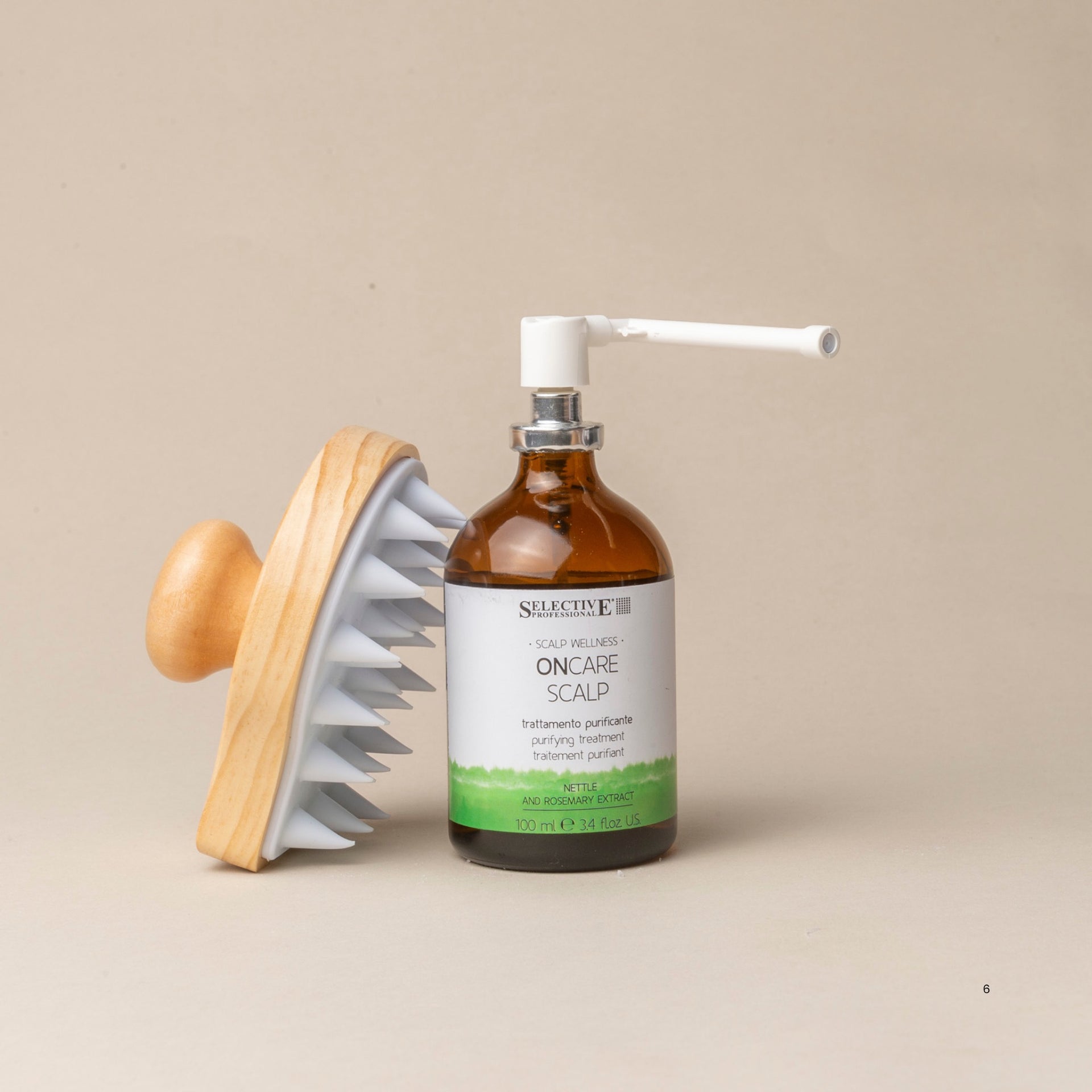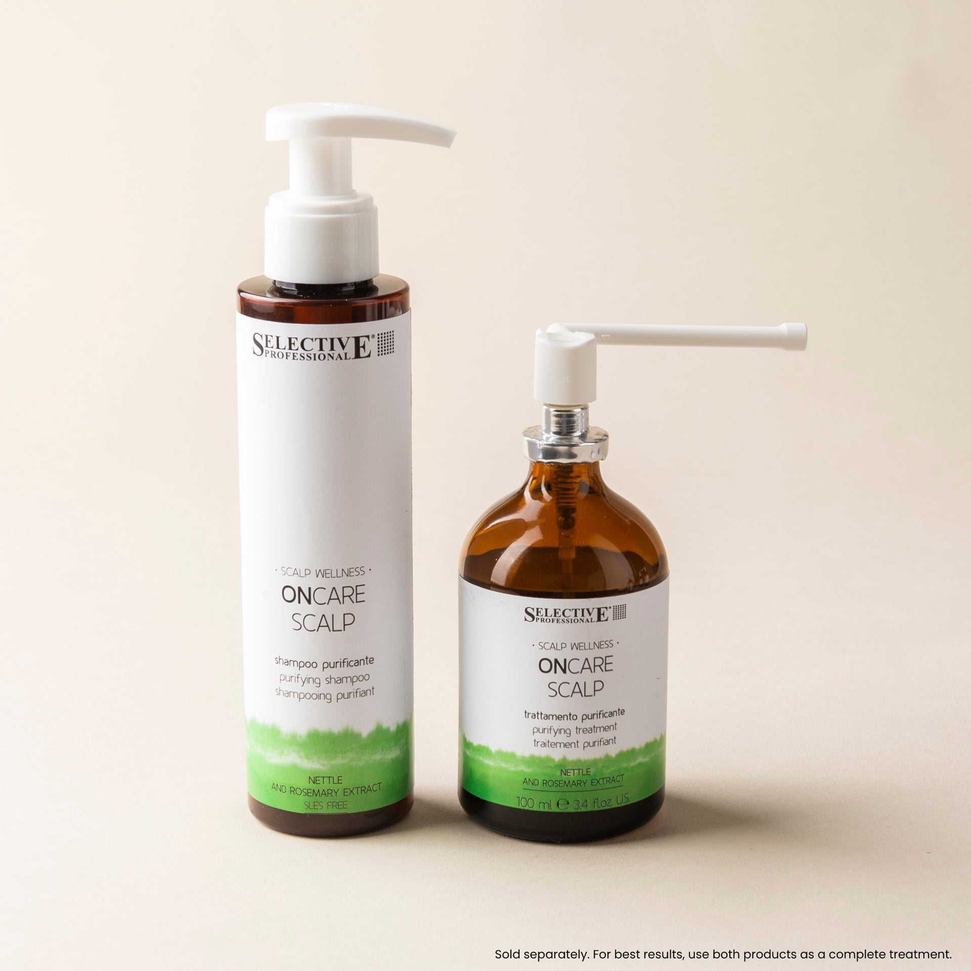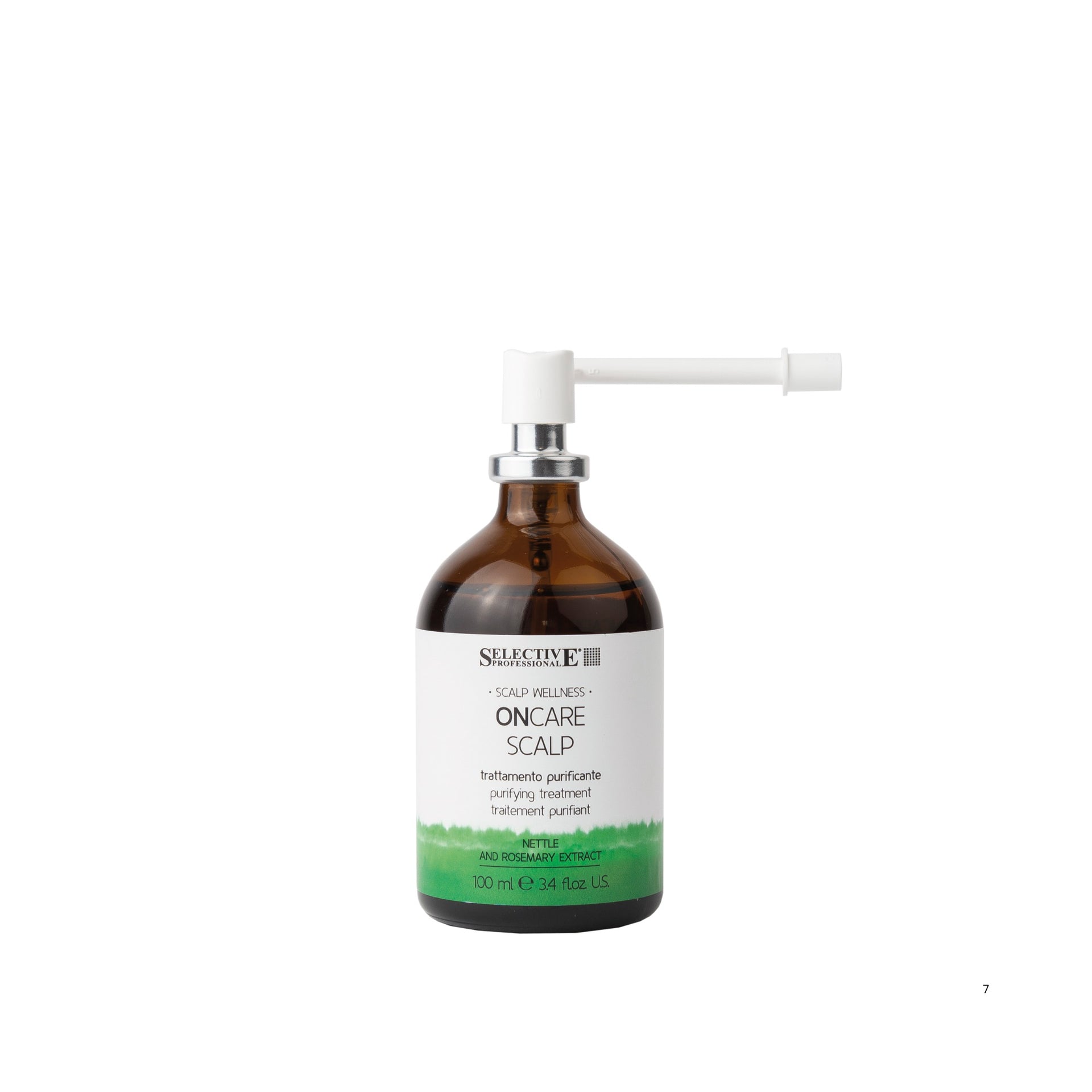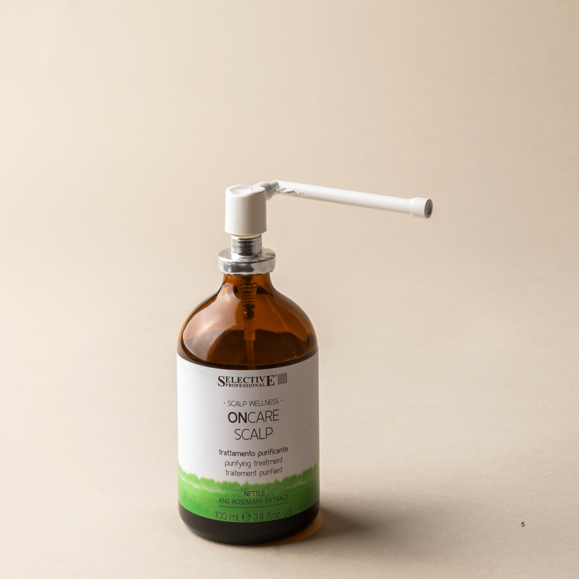 The Selective Professional OnCare Scalp Purifying Treatment offers a professional-grade solution for stubborn dandruff and scalp irritation without the inconvenience of additional rinsing. This innovative 100ml leave-in spray delivers powerful active ingredients directly to the scalp, where they work continuously to combat flaking, regulate excess sebum and relieve uncomfortable itching. Unlike traditional anti-dandruff products that merely mask symptoms, this targeted treatment addresses the root causes of scalp imbalance through a synergistic blend of potent botanicals and dermatological actives. The lightweight formula penetrates quickly without weighing hair down, creating a healthy scalp environment that visibly reduces dandruff from the very first applications. Perfectly pH balanced between 4.0-6.0 to respect the scalp's natural protective barrier, this purifying spray complements the effects of anti-dandruff shampoo for comprehensive scalp care that delivers both immediate relief and long-term improvement.