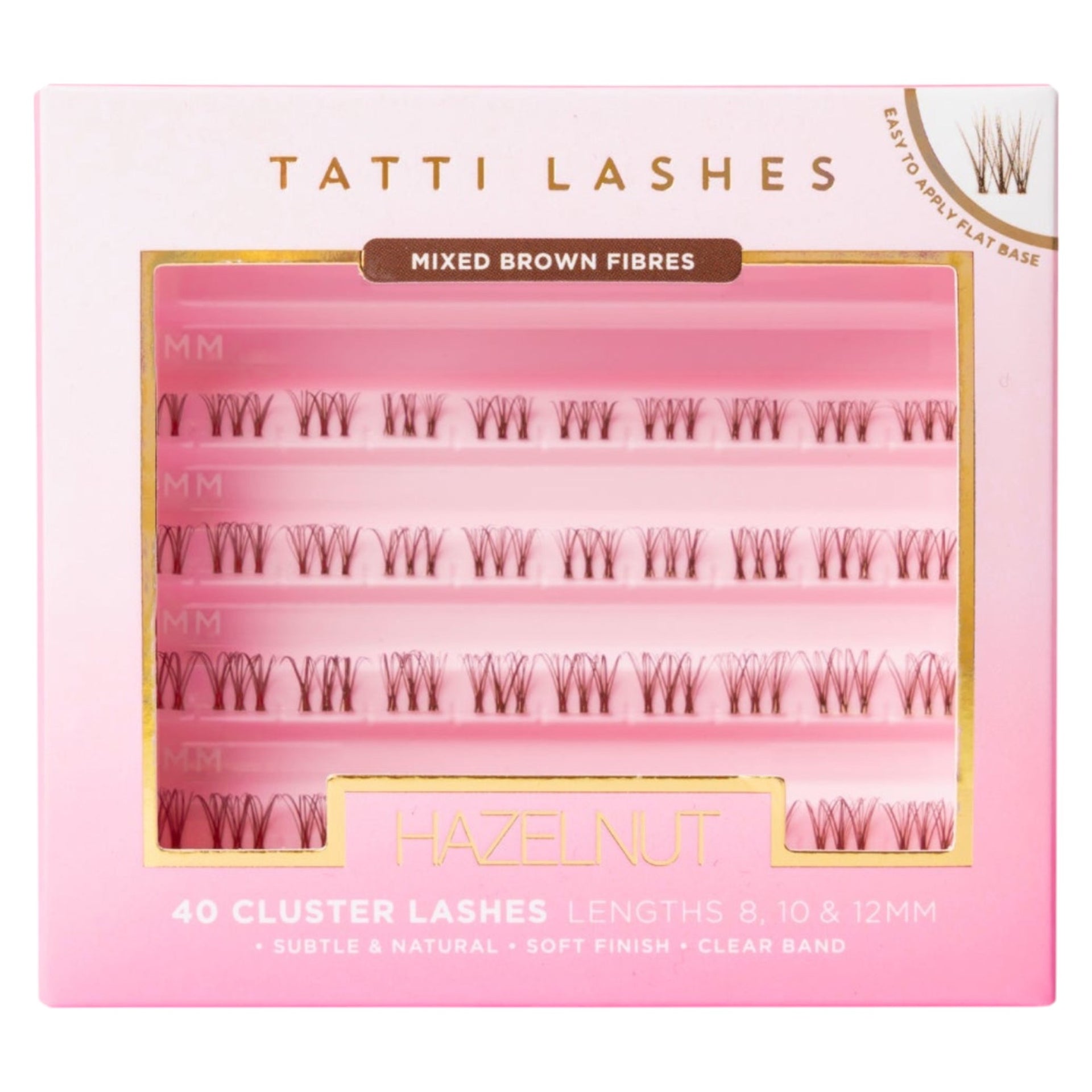 Each cluster of the Tatti Lashes - Hazelnut Individual Lashes (8, 10 & 12mm) features a flattering CC curl and a knot-free clear band that blends seamlessly with your natural lash line for an exceptionally light and natural feel. With a generous 40 reusable clusters per pack, you can enjoy multiple wears, offering excellent value and enduring style. These individual clusters are super easy to apply, allowing you to create a bespoke, lash extension effect from the comfort of your home. Furthermore, they are proudly vegan friendly and cruelty-free, reflecting a commitment to ethical beauty.