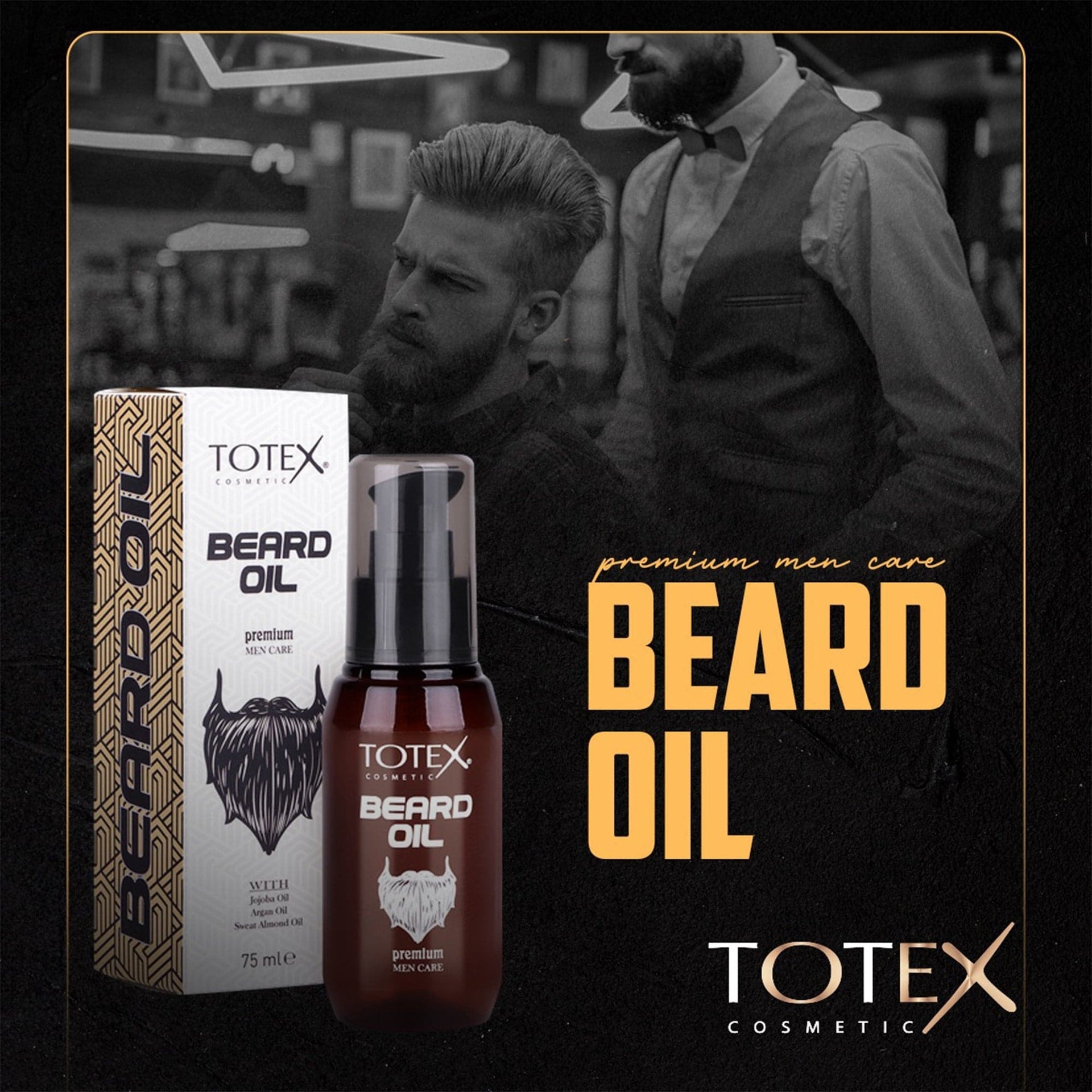 Apply a small amount of Totex Beard Oil to the palms of your hands and rub them together. Massage the oil into the beard and skin underneath, ensuring even distribution. Use daily or as needed for best results.