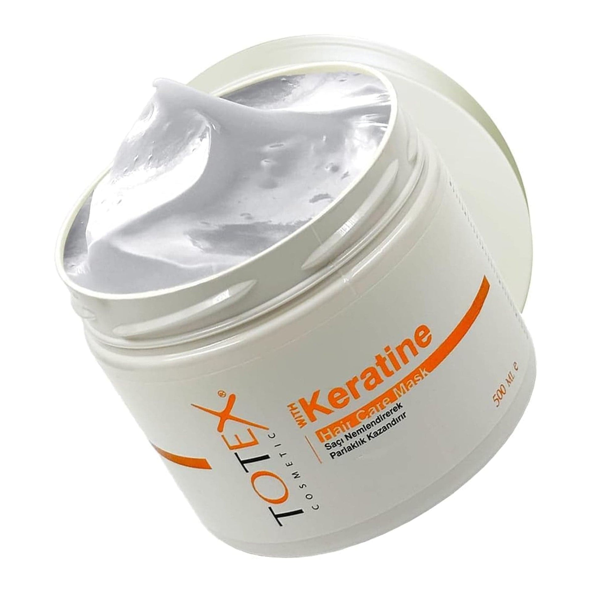 Totex Hair Care Mask Keratin 500ml provides deep hydration and nourishment to dry and damaged hair, helping to restore moisture and prevent further dehydration. The keratin in the mask provides antioxidant, antiviral, antifungal and antibacterial properties, straightening and repairing hair exposed to shampoo and external factors. This hair mask helps regrowth by maintaining the natural lipid balance and strengthening the hair. Enriched with proteins and essential fatty acids, it nourishes and repairs hair follicles, reducing breakage and improving overall hair health.