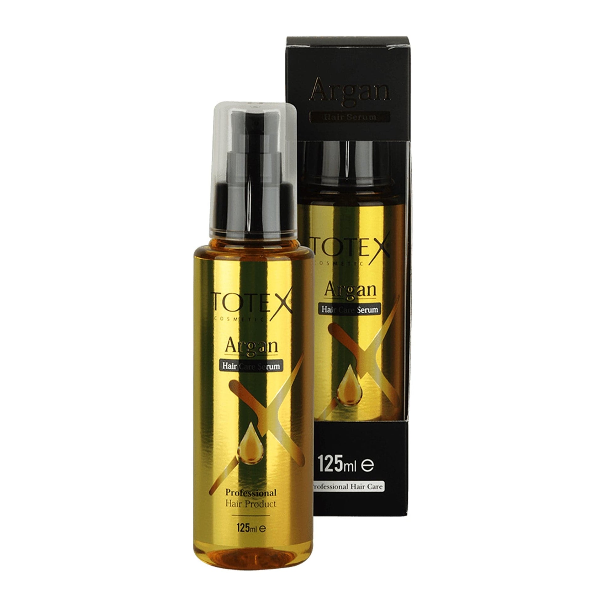 Totex Hair Care Serum Argan 125ml is specially formulated with luxurious Argan Oil, renowned for its exceptional benefits for hair and skin. High in Omega 9, Omega 6 and Vitamin E, this serum provides a natural shield against free radicals, repairing hair at the roots and promoting healthy, shiny hair. It also nourishes and strengthens nails and skin for an even, harmonious appearance and fuller, healthier hair.
