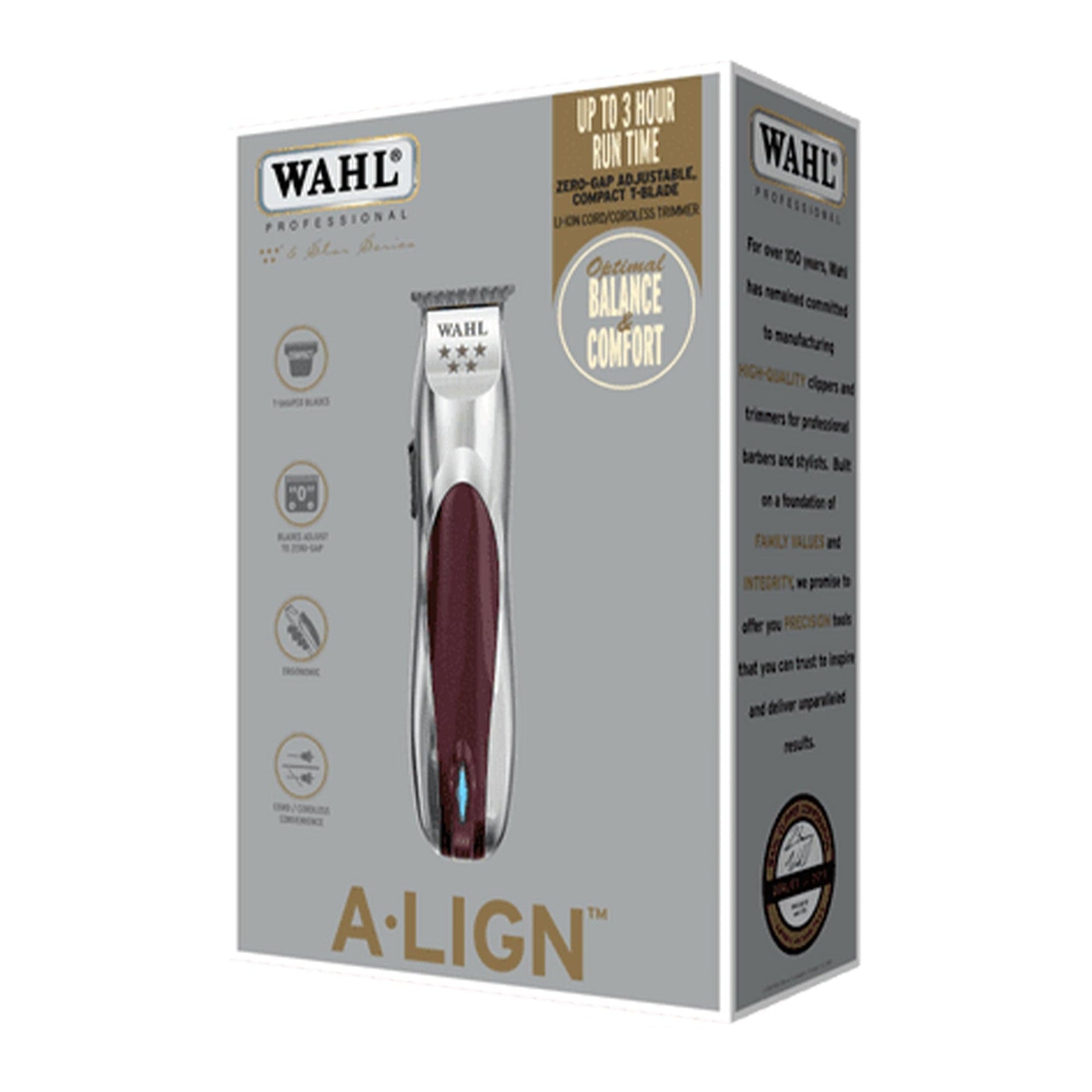 The Wahl 5 Star A-Lign Trimmer represents the pinnacle of precision engineering with its ultra-thin, zero-gap adjustable T-blade crafted from high-carbon chrome-plated steel. Engineered with over a century of expertise, this professional-grade trimmer delivers exceptional visibility and control for detailed work in compact spaces. The powerful rotary motor operates at 6,800 RPM, ensuring clean cuts and precise lines, whilst the extended 180-minute runtime from a quick 60-minute charge provides unparalleled cordless freedom.