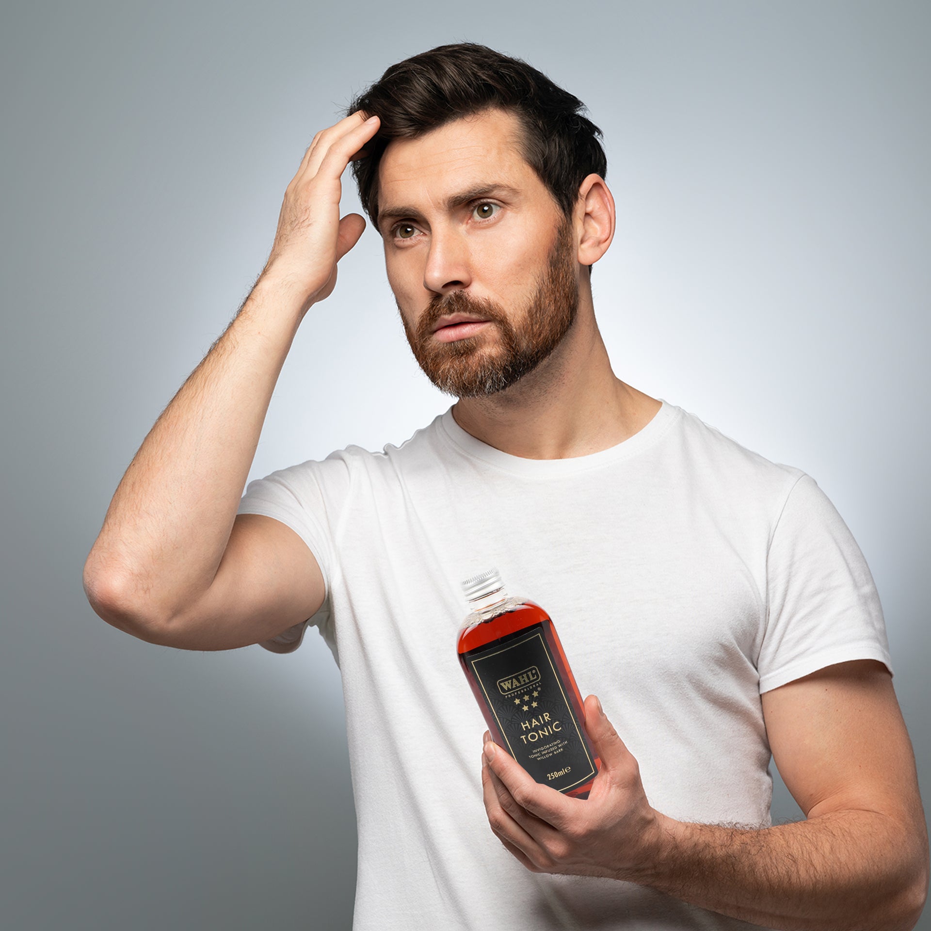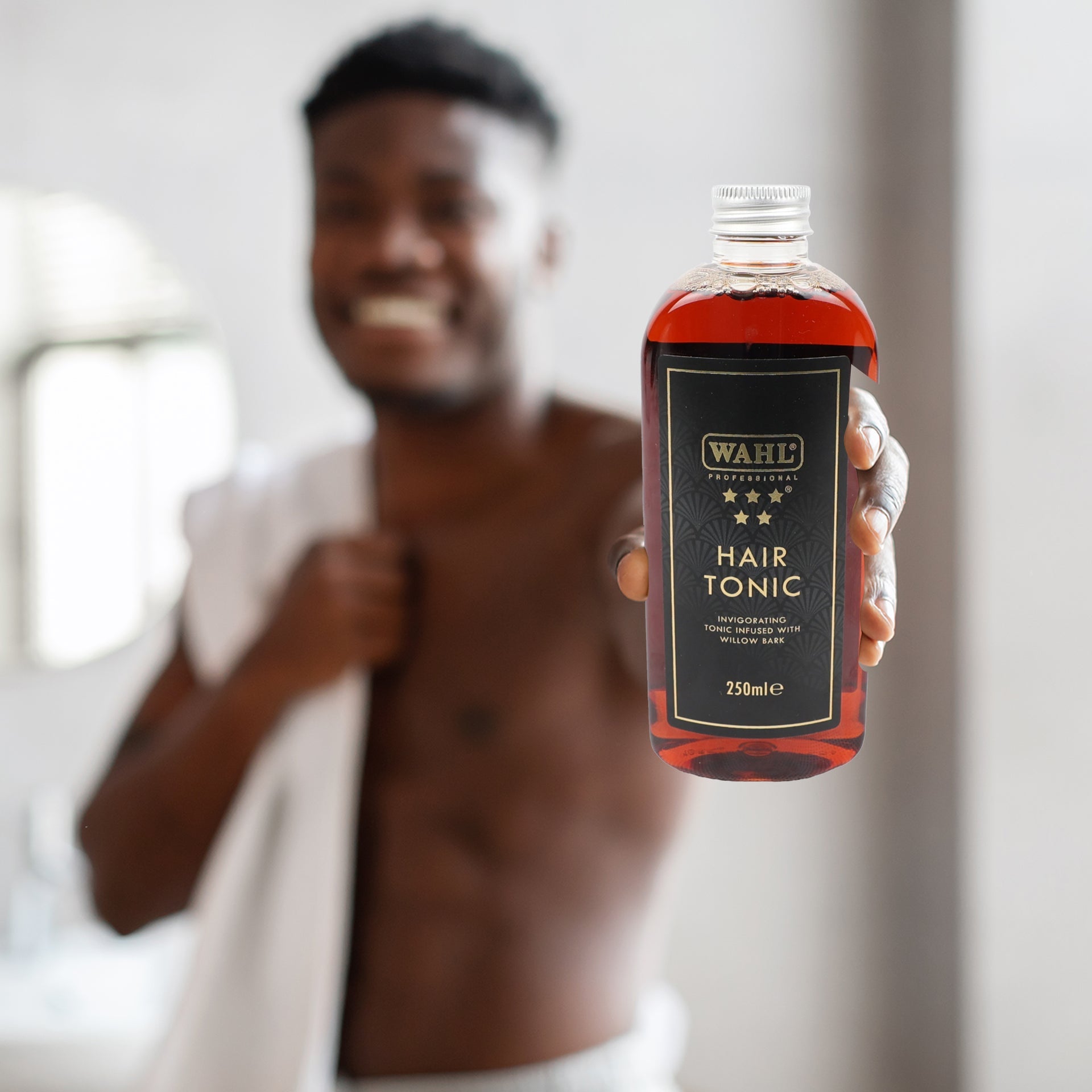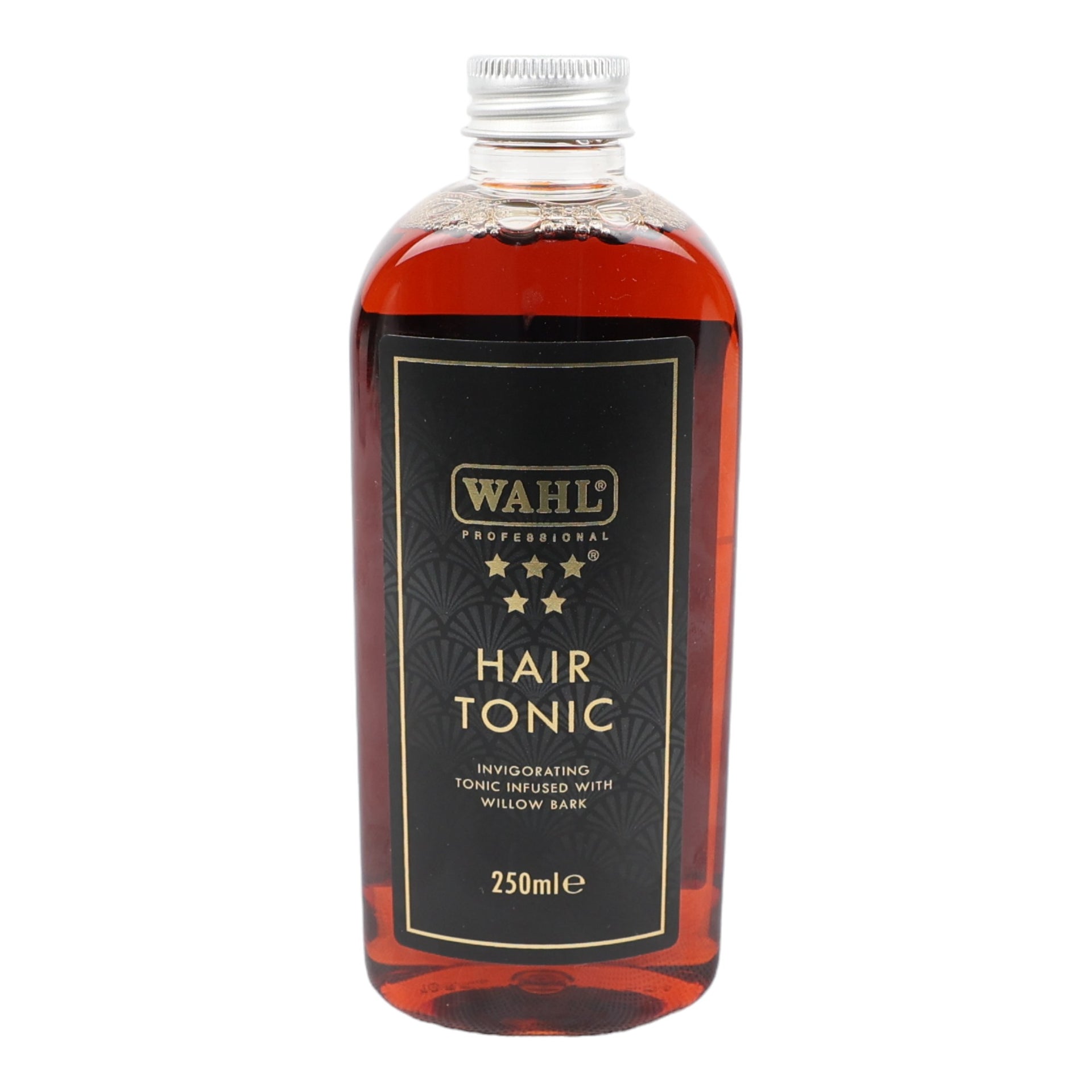 The Wahl 5 Star Hair Tonic is a premium-grade scalp treatment that combines traditional grooming excellence with modern hair care science. This invigorating formula harnesses the natural properties of willowbark, white nettle, and black mulberry to deliver comprehensive care for both hair and scalp. The professional-strength solution effectively targets dandruff whilst providing essential nourishment to promote healthier-looking hair.
