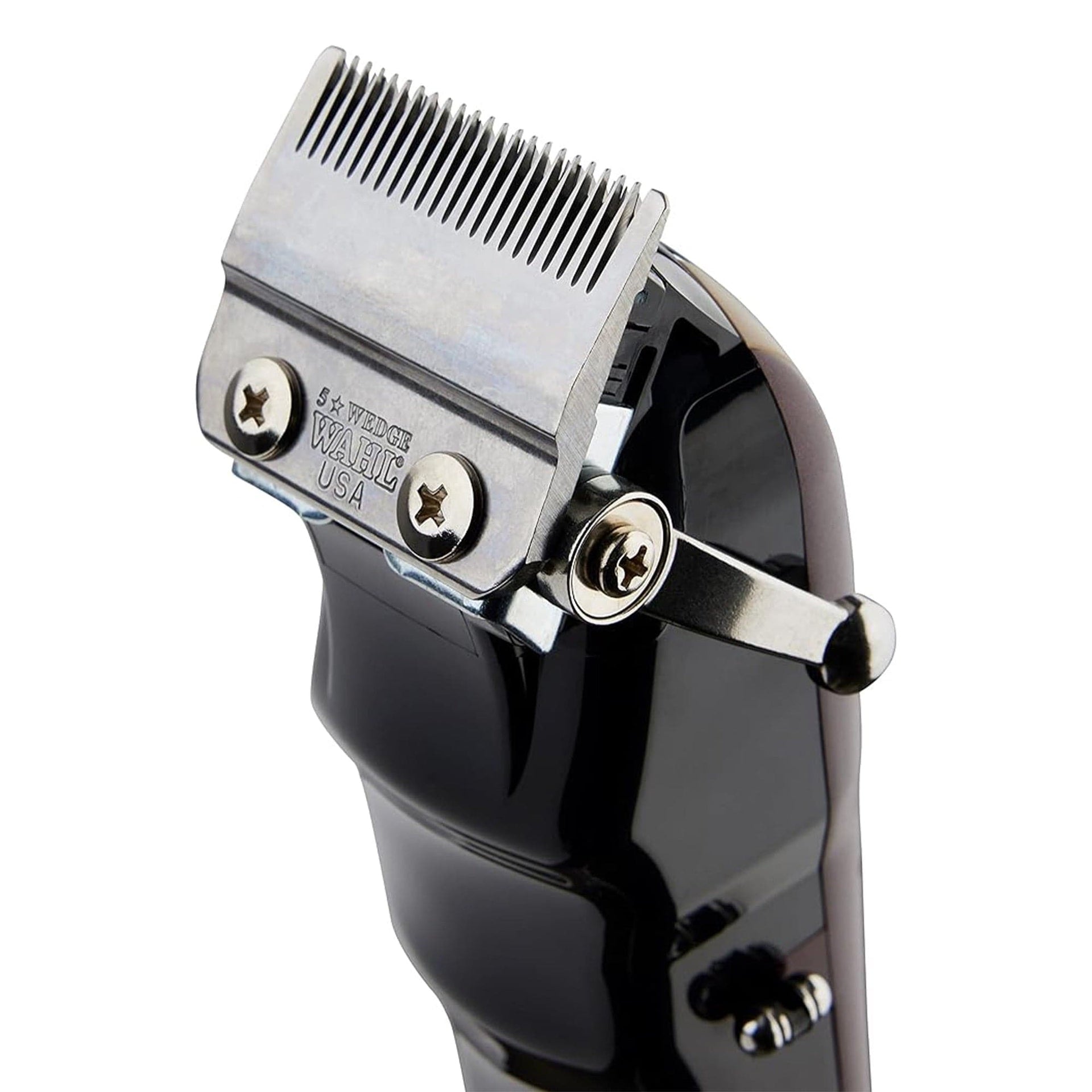 The Wahl 5 Star Cordless Legend Clipper revolutionises professional cutting with its innovative Wedge Blade technology and cordless flexibility. Delivering an impressive 100 minutes of continuous operation from a single 60-minute charge, this premium clipper combines extended range fading capabilities with unrestricted mobility. The unique Crunch Blade technology creates distinctive cutting angles for precise blending and superior fade work, while the extended taper throw provides exceptional control over cutting lengths between 0.7mm and 1.7mm without additional attachments.