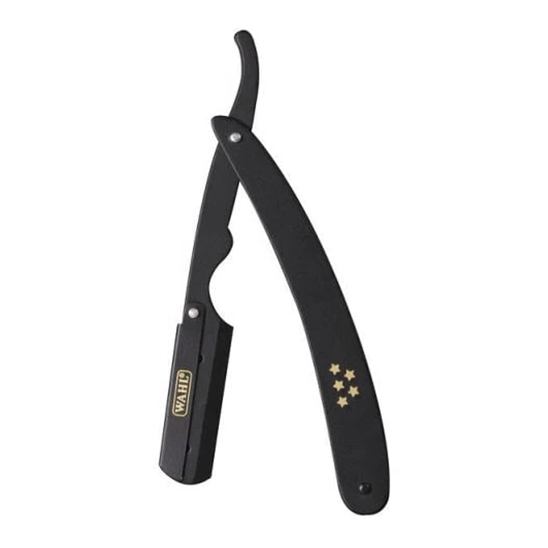 The Wahl 5 Star Shave Razor is a premium professional folding razor that combines traditional craftsmanship with modern convenience. This sophisticated grooming tool features a precision-engineered design that accommodates disposable platinum blades, eliminating the need for traditional blade maintenance whilst ensuring consistent, professional results. The ergonomically designed handle provides superior control and balance, making it perfect for achieving precise lines and exceptionally close shaves.