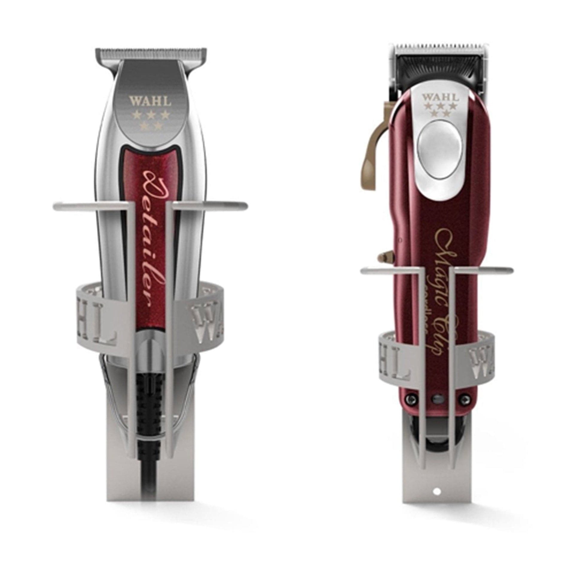 The Wahl Clipper Holder features a versatile design that accommodates most professional clippers and trimmers on the market. Its wall-mounted configuration helps maximise workspace efficiency by keeping essential tools within easy reach whilst maintaining a tidy, professional appearance. The holder's practical design includes secure mounting points for stable installation, ensuring your equipment stays safely stored when not in use.