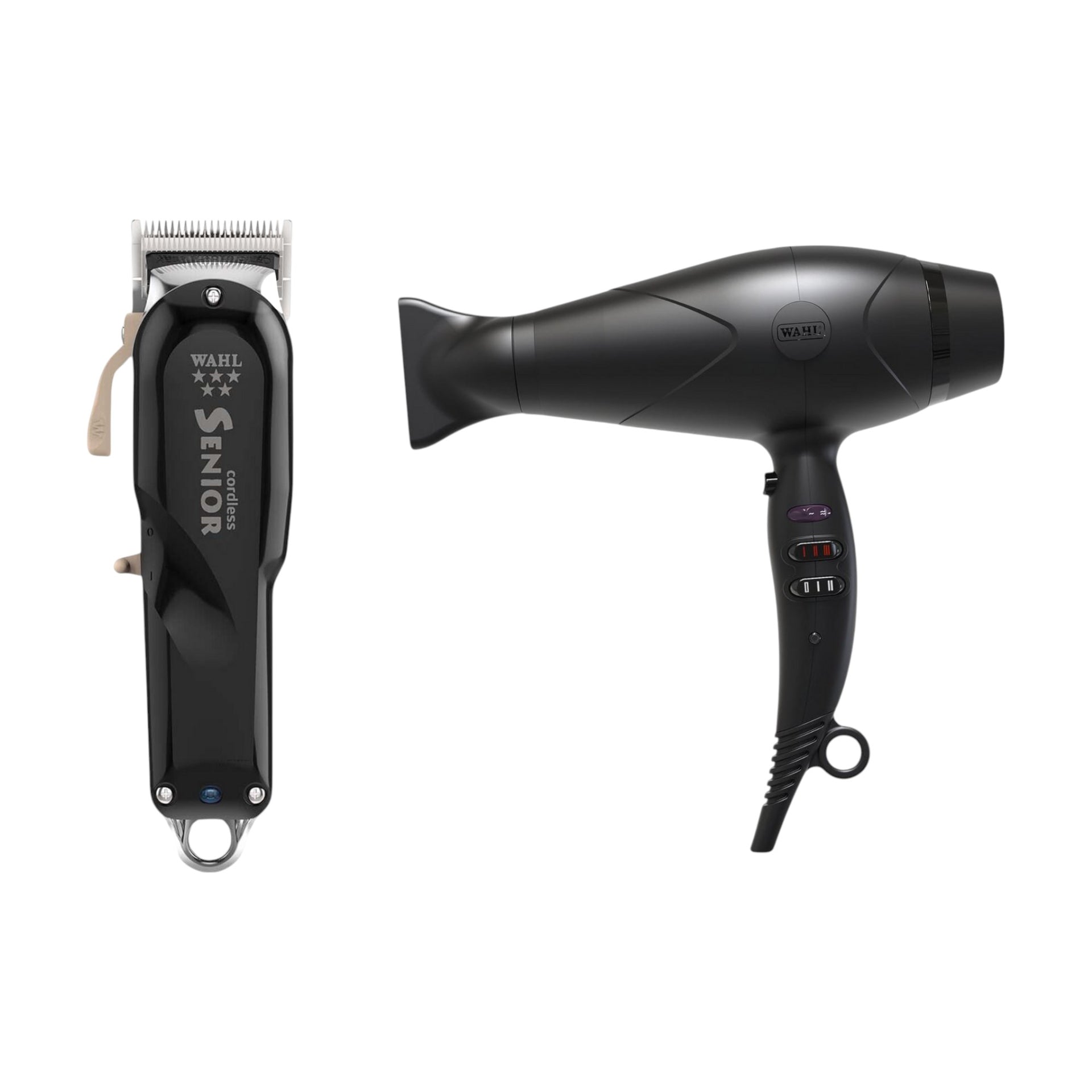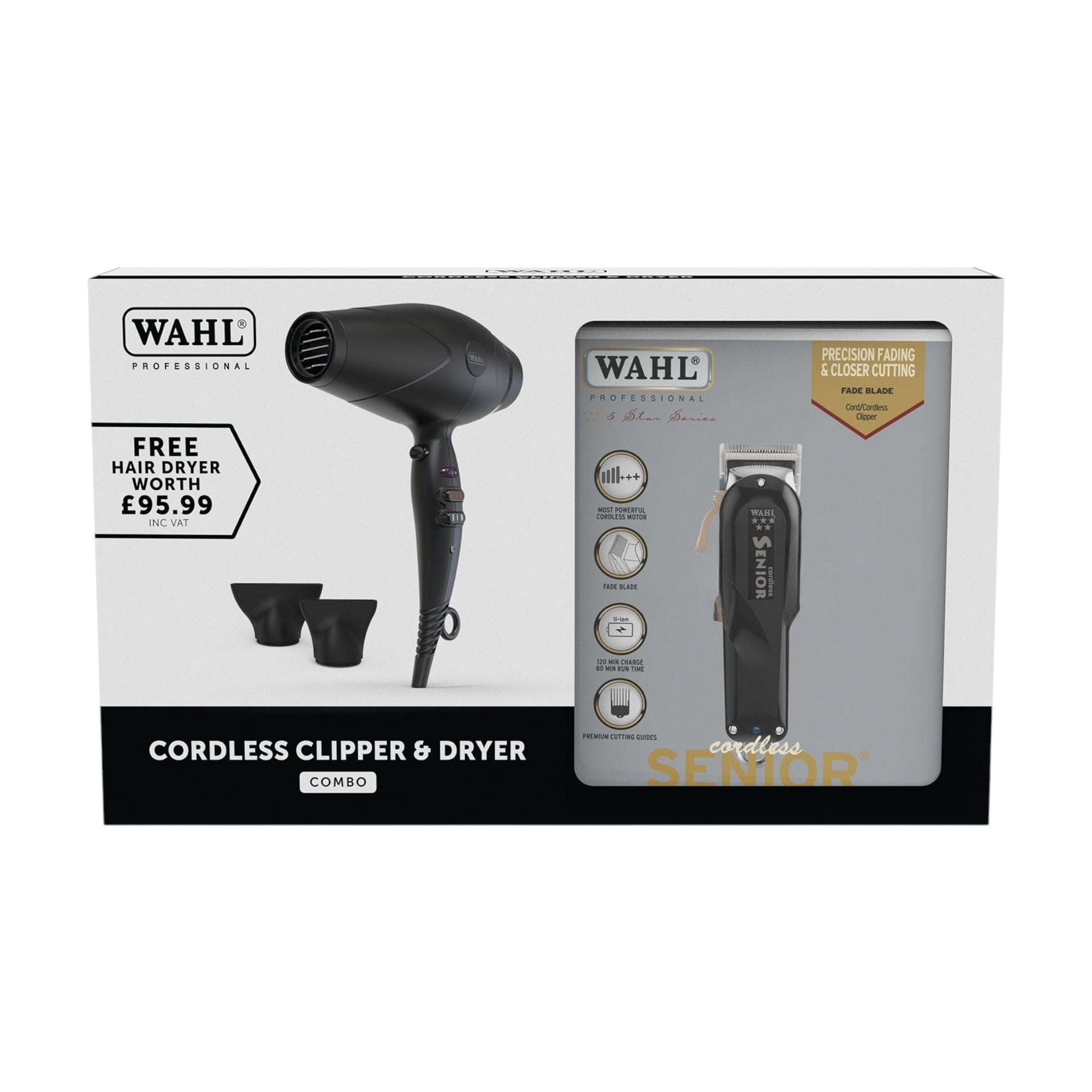 - Complete professional styling solution combining Wahl's premium cordless Senior clipper and 2400W Style dryer in one package.