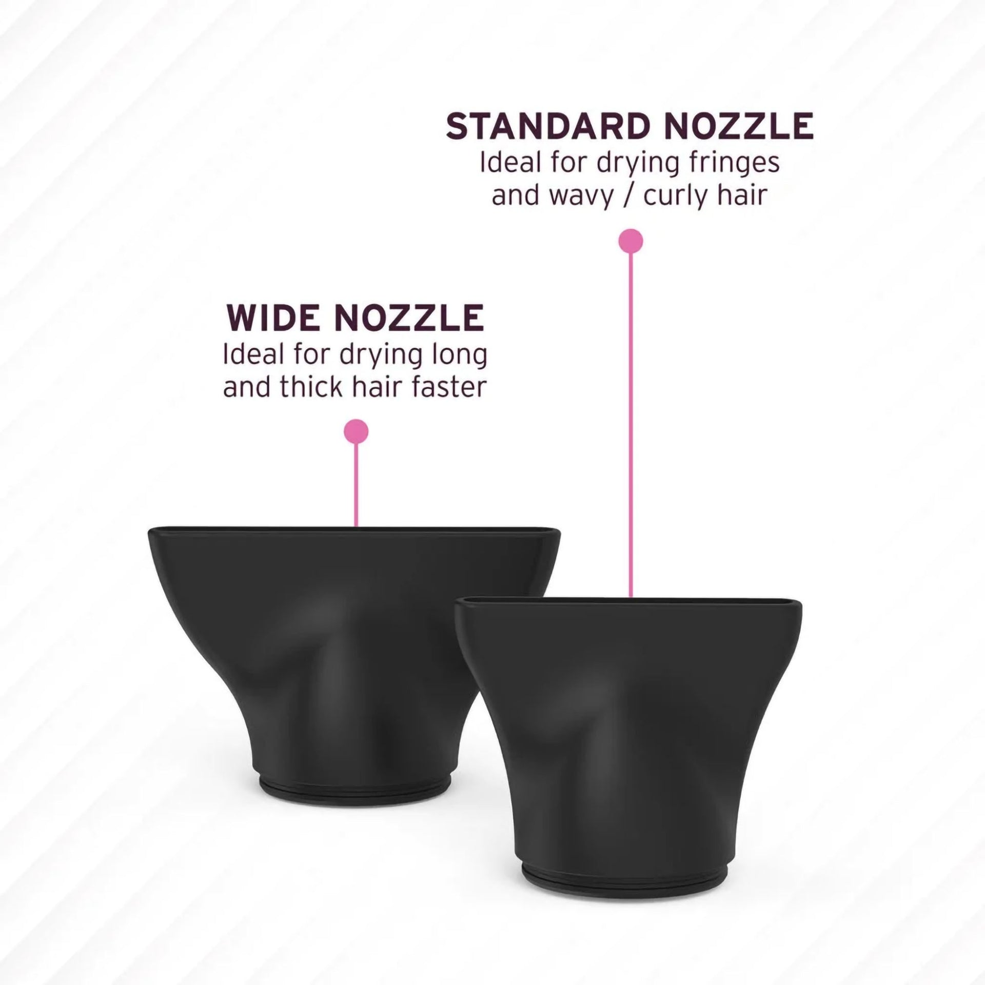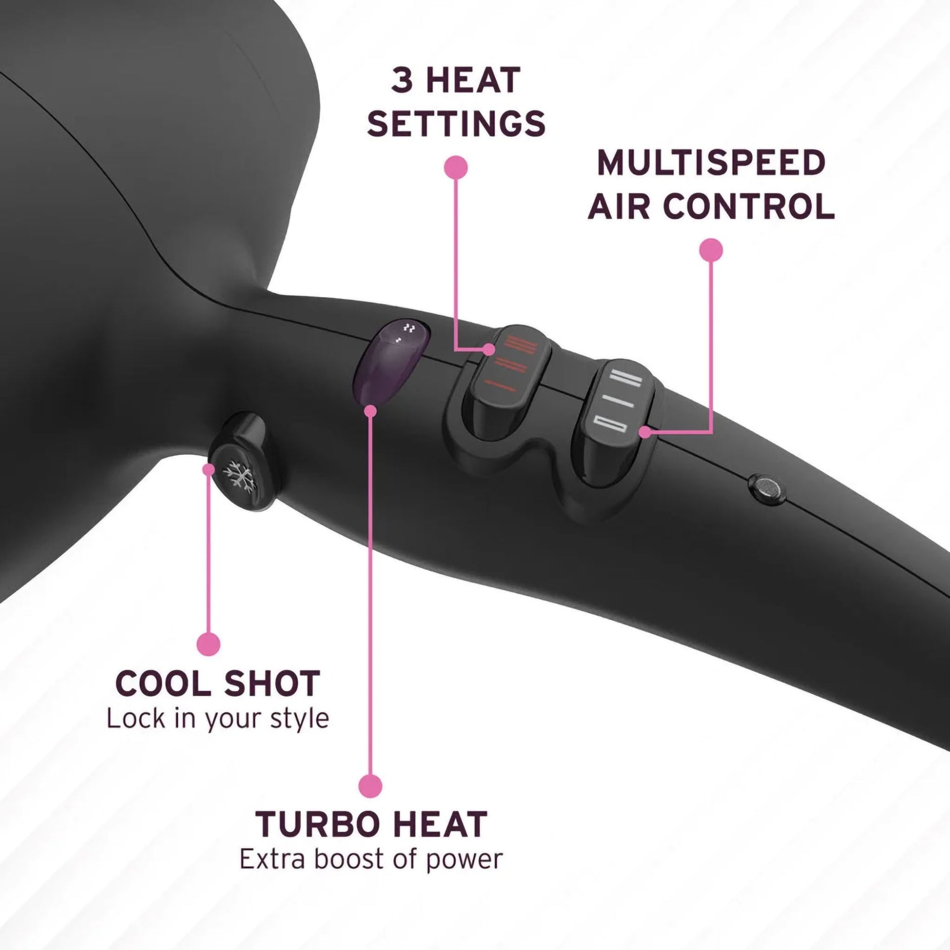 - Powerful 2400W dryer with Quick Dry Airflow technology ensures faster drying at lower temperatures to protect hair integrity.