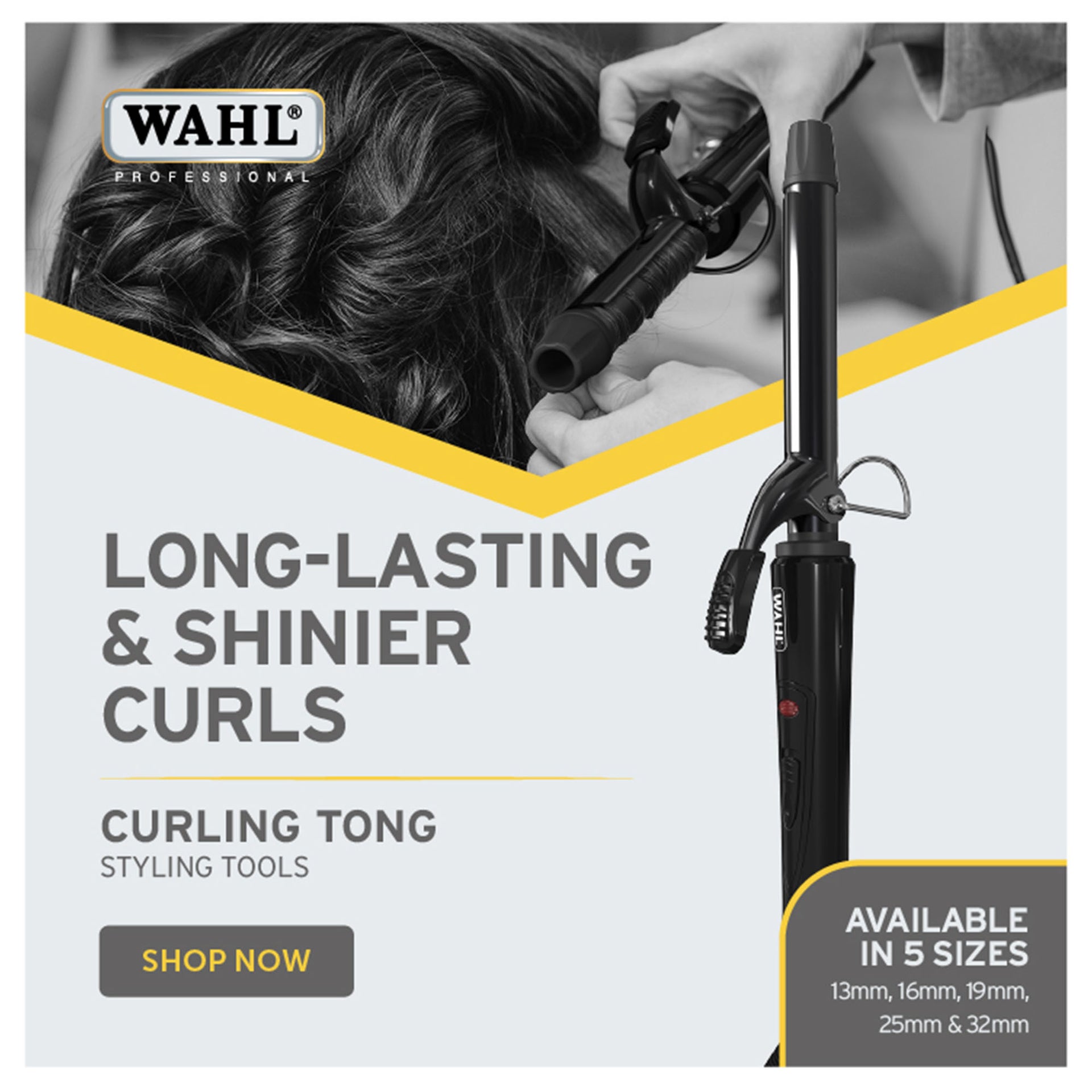 The Wahl Curling Tong is designed to help you create long-lasting curls with ease, thanks to its ceramic-coated barrel and fast heat transfer technology. Reaching a maximum temperature of 200°C, this curling tong locks in moisture while styling, resulting in shiny, soft, and healthy-looking hair. Its slim barrel design allows for the creation of smooth, sleek curls, with minimal damage to hair. Available in five different barrel sizes—13mm, 16mm, 19mm, 25mm, and 32mm—the Wahl Curling Tong caters to all curl preferences, from tight ringlets to loose beach waves.