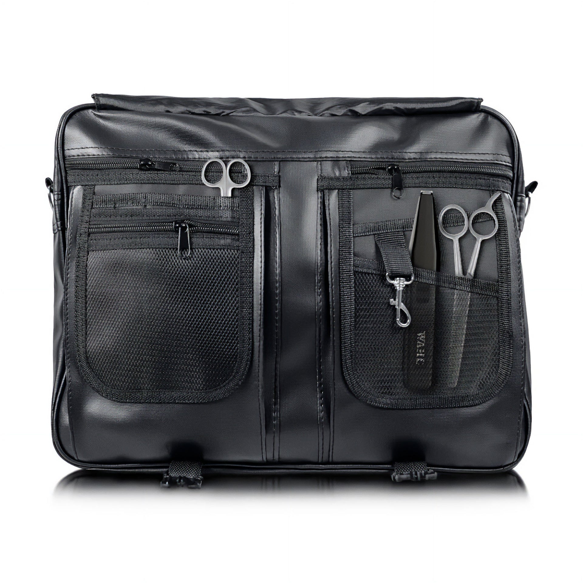 The Wahl Grooming Tool Bag Satchel Style is an expertly crafted professional storage solution that combines style with practicality. This sophisticated satchel features multiple dedicated compartments designed to keep your valuable styling tools organised and protected during transport and use. The thoughtfully arranged storage spaces ensure easy access to all your essential equipment, while the professional aesthetic maintains a polished appearance suitable for any salon environment.