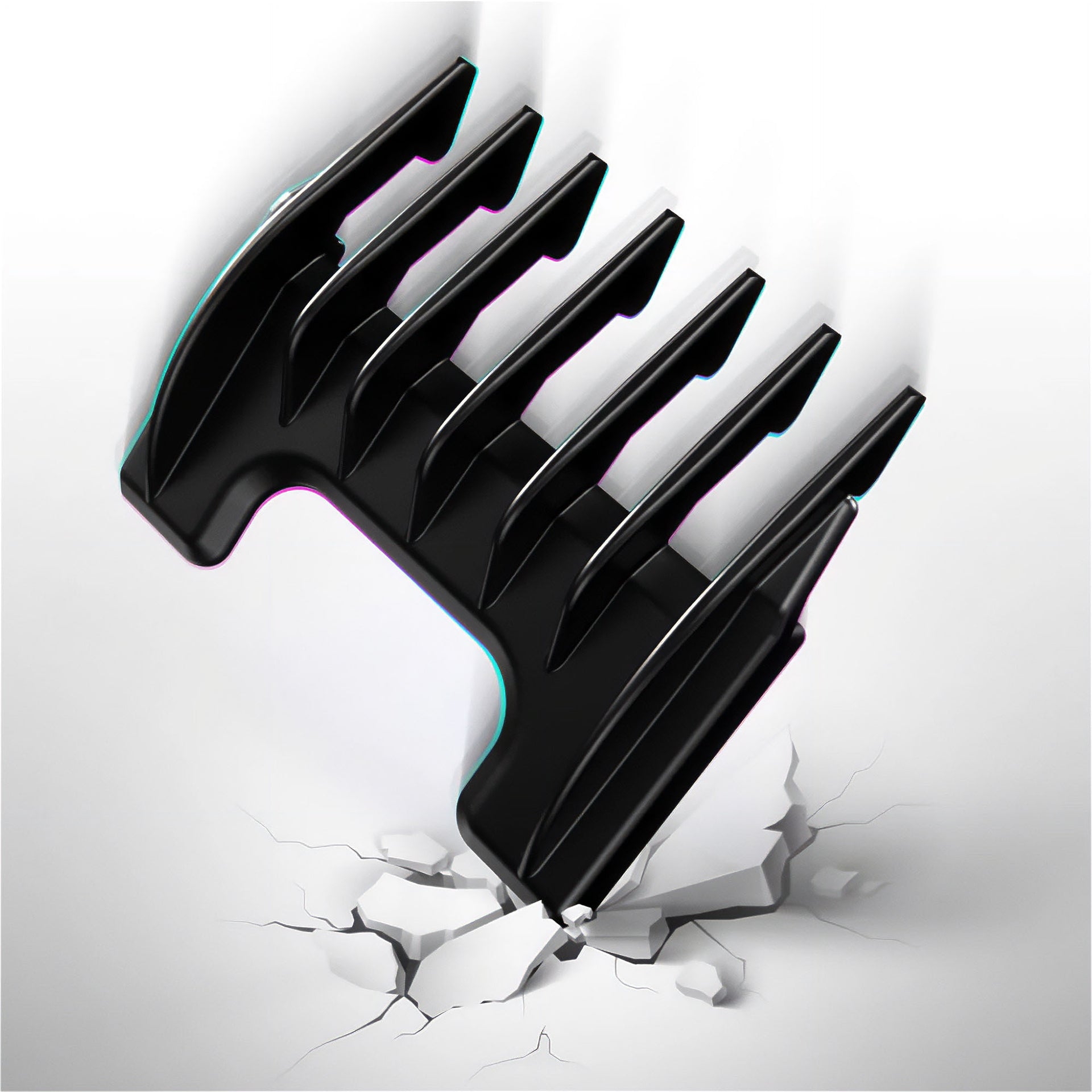 Slide attachment firmly onto clipper blade until secured. Select appropriate guard size for desired cutting length.