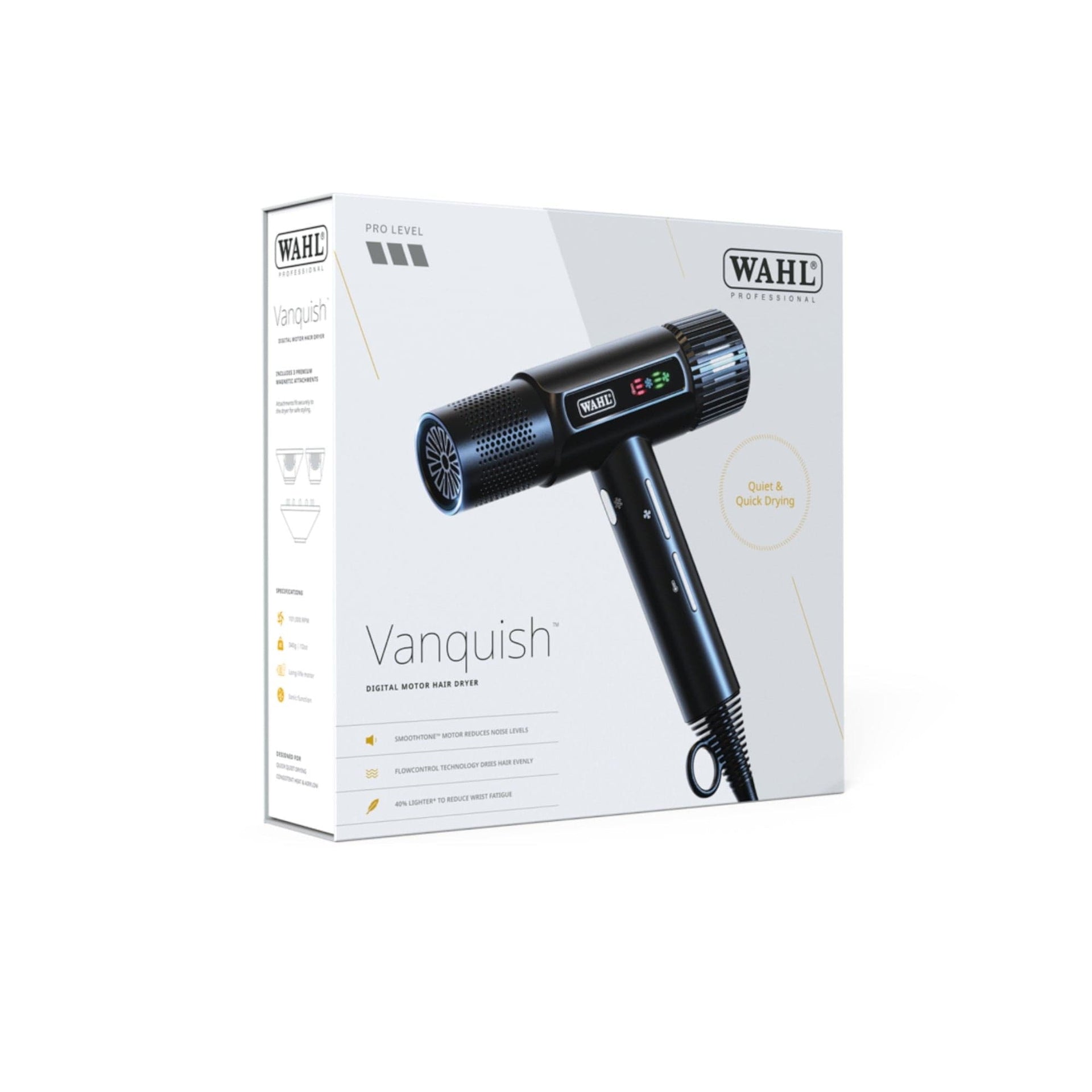The Wahl Vanquish™ Hair Dryer redefines professional drying with its lightweight design, powerful digital motor, and advanced SmoothTone™ technology for a quieter drying experience. Featuring FlowControl technology, this dryer provides fast and even drying while maintaining the natural health and shine of your hair. Weighing just 340g, it’s designed to reduce wrist fatigue, making it ideal for prolonged use in salons or at home. Whether you’re aiming for straight, bouncy, or curly styles, the three magnetic attachments offer the versatility needed to create a range of looks on all hair types.
