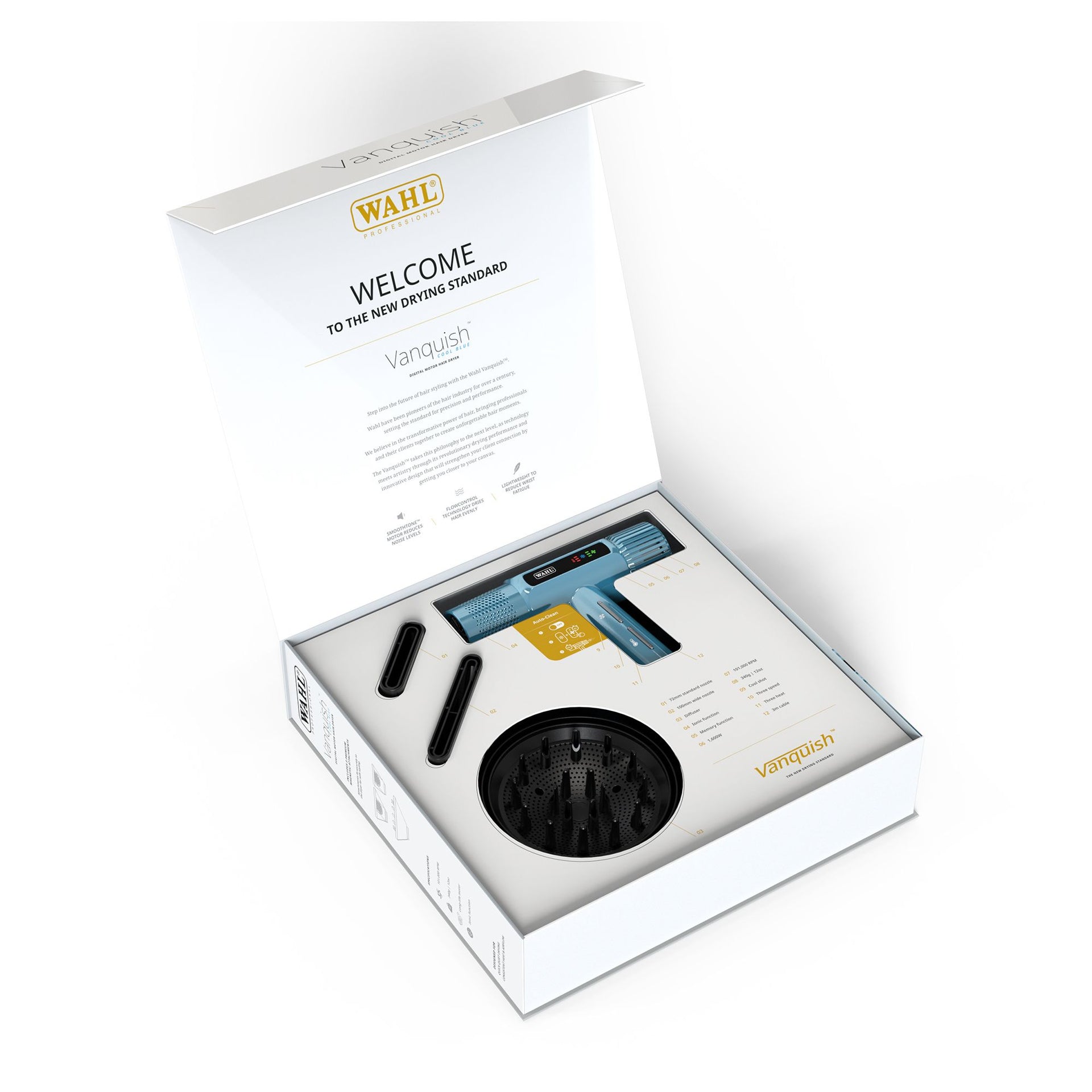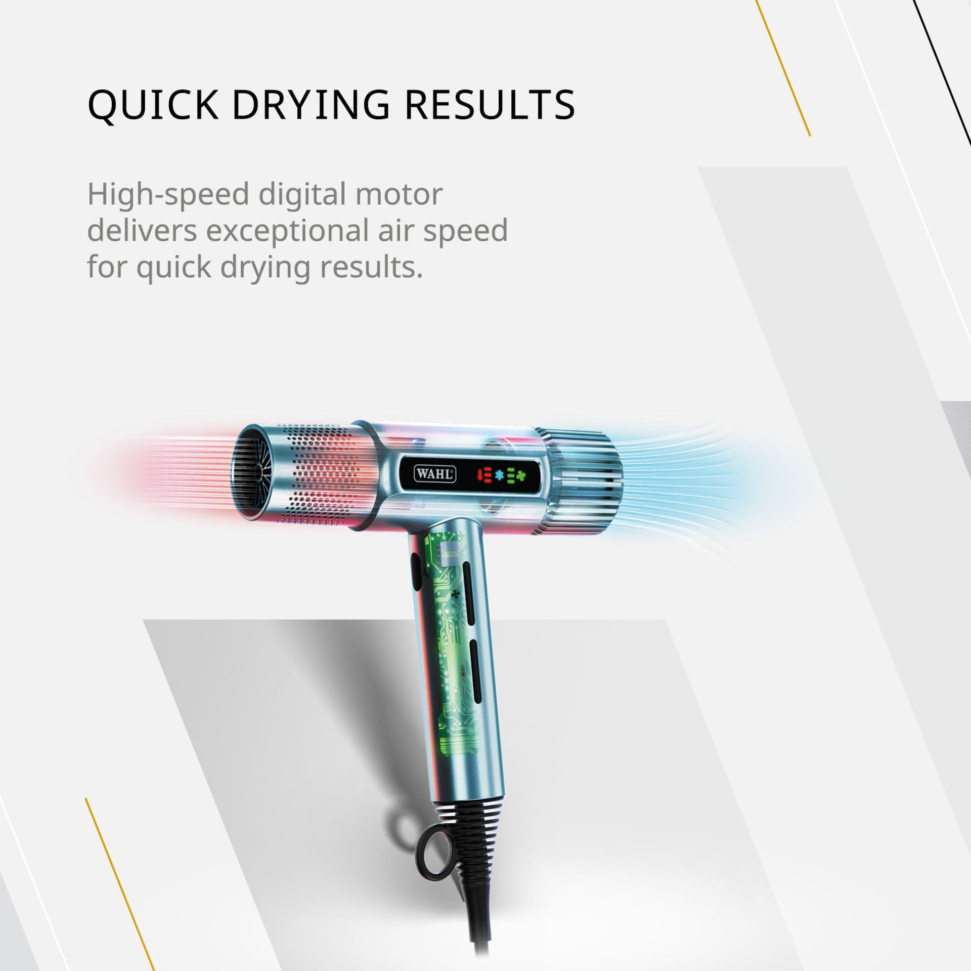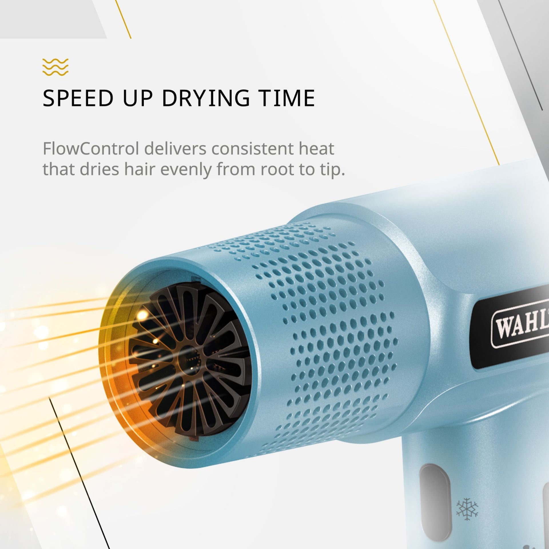 The limited edition Wahl - Vanquish Hair Dryer Cool Blue sets a new standard in hair drying, combining a powerful digital motor with an exceptionally lightweight and stylish design. It is perfect for quick drying, using a powerful and consistent airflow that dries hair evenly without burning. Professionals and home users alike will benefit from the super-light design which improves handling and reduces wrist fatigue, while the SmoothTone™ technology ensures a quieter styling experience. It delivers controlled airflow and efficient power for a fast, even blow-dry every time.