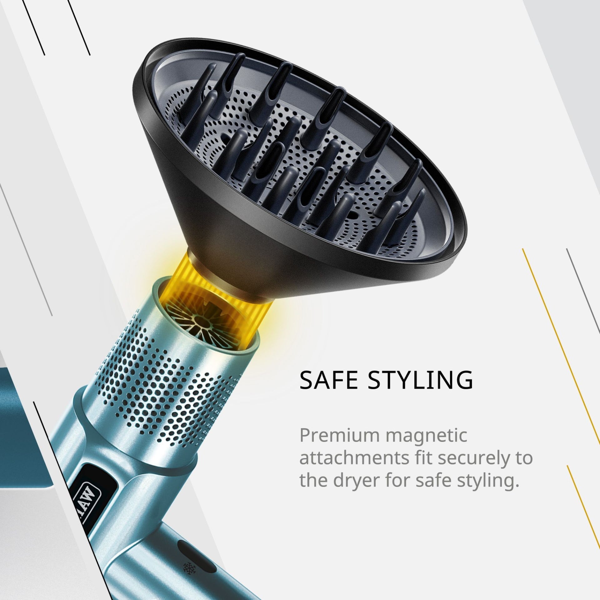 - Includes three premium magnetic attachments: two nozzles and a wide diffuser.