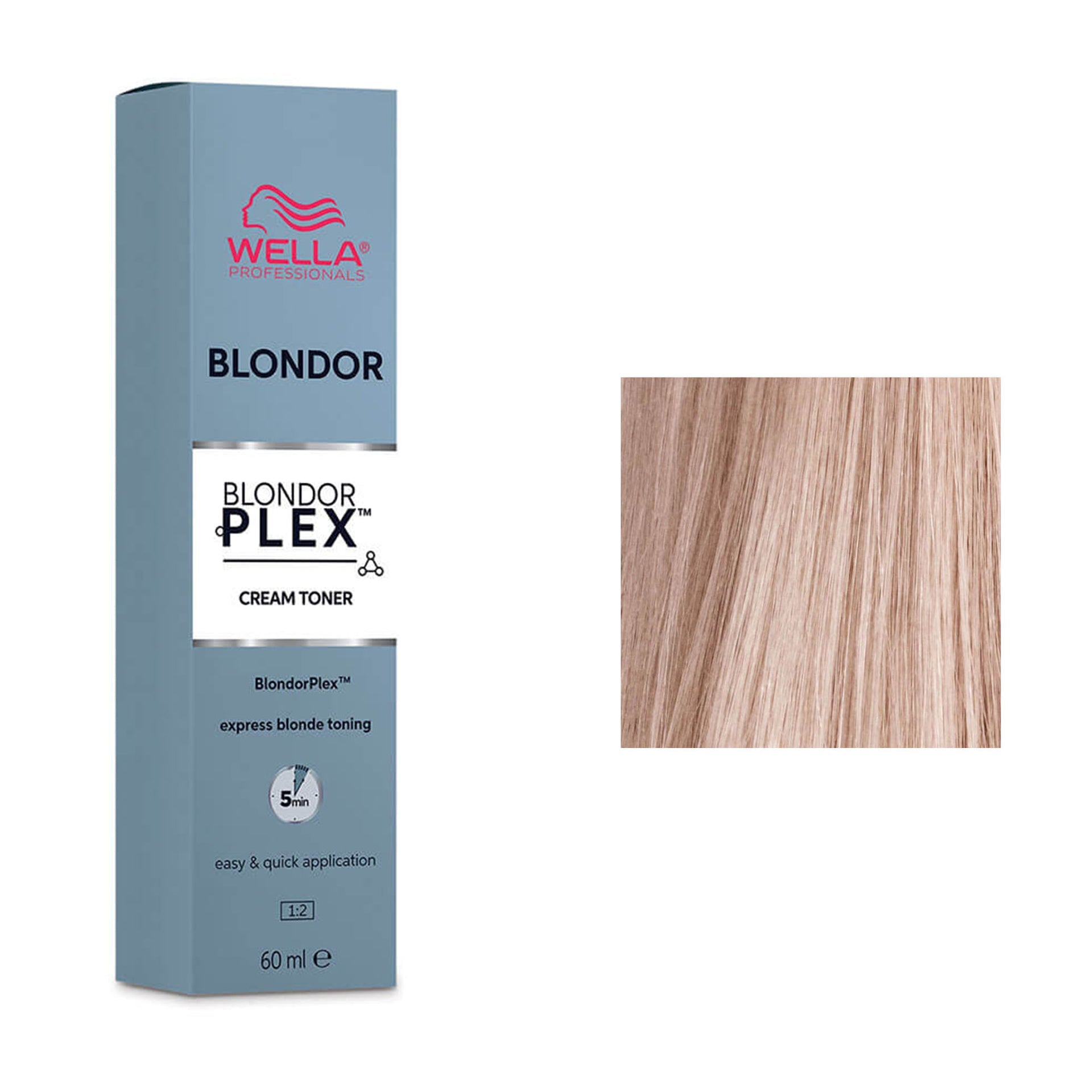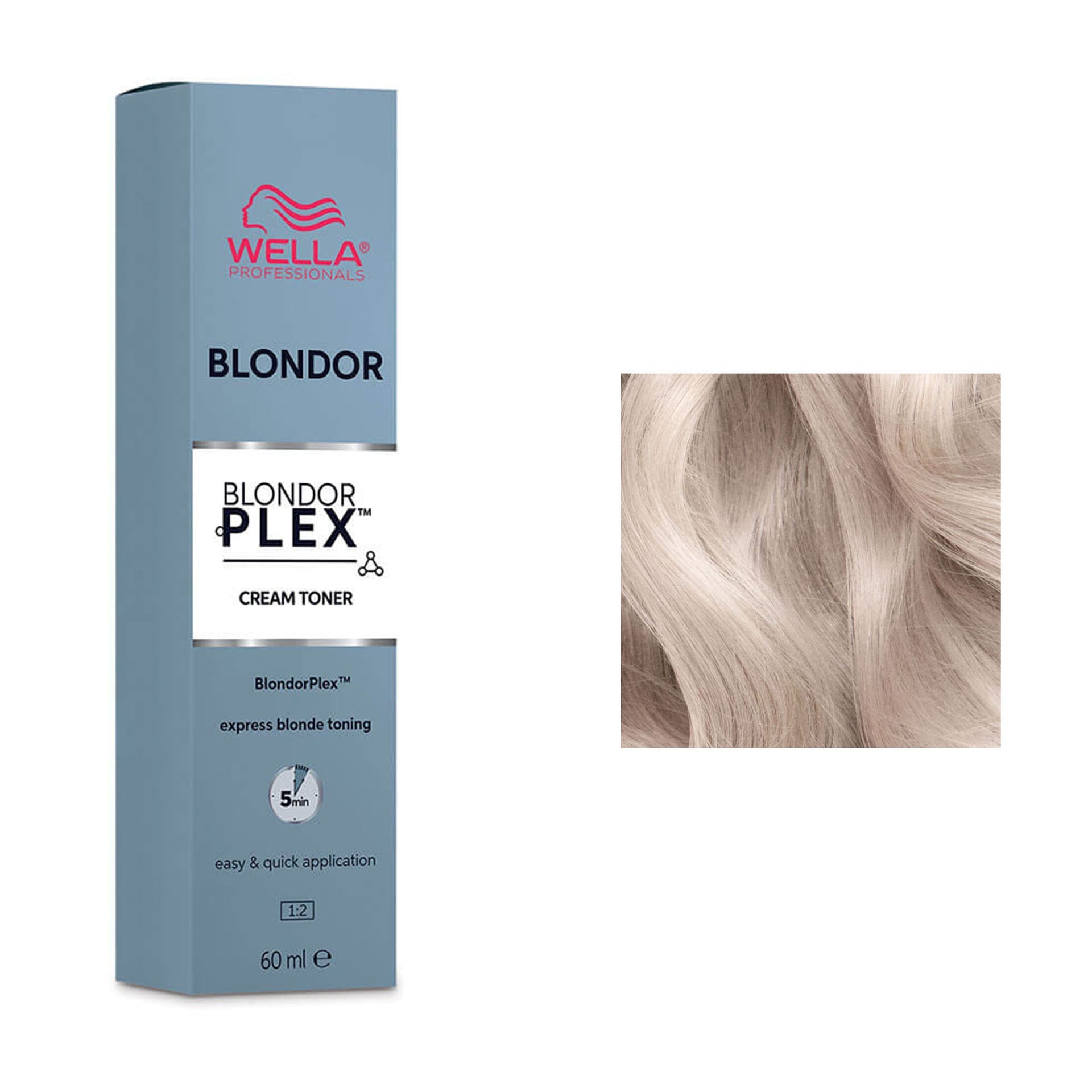 Mix BlondorPlex Cream Toner with Welloxon Perfect Developer in a 1:2 ratio. For express toning, use 1.9% Welloxon Perfect. For base breaker, use 4% Welloxon Perfect. Apply to pre-lightened or natural hair, leave for 5 minutes, and rinse thoroughly.