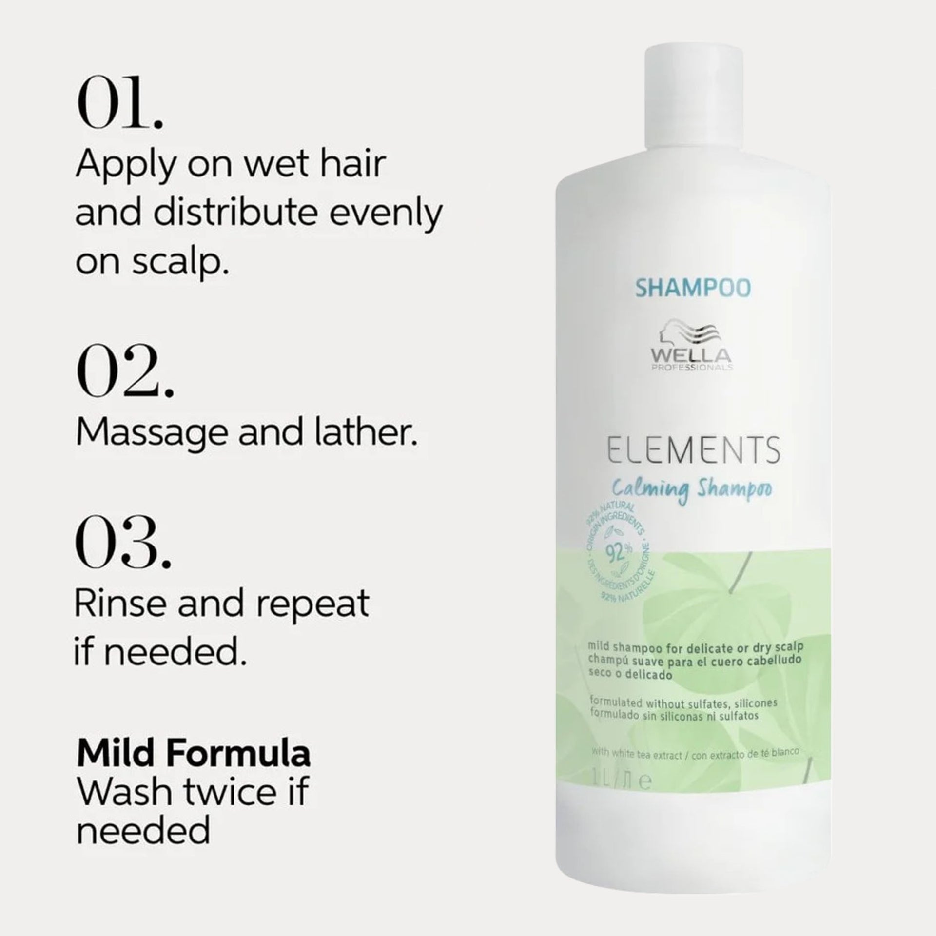 Apply to wet hair, gently massage into scalp with fingertips (avoiding scratching or aggressive rubbing), work through to ends, allowing the gentle formula to cleanse for 1-2 minutes before rinsing thoroughly with lukewarm water. For optimal scalp comfort, follow with Elements Renewing Mask weekly; suitable for frequent use due to its exceptionally gentle, non-irritating formulation.