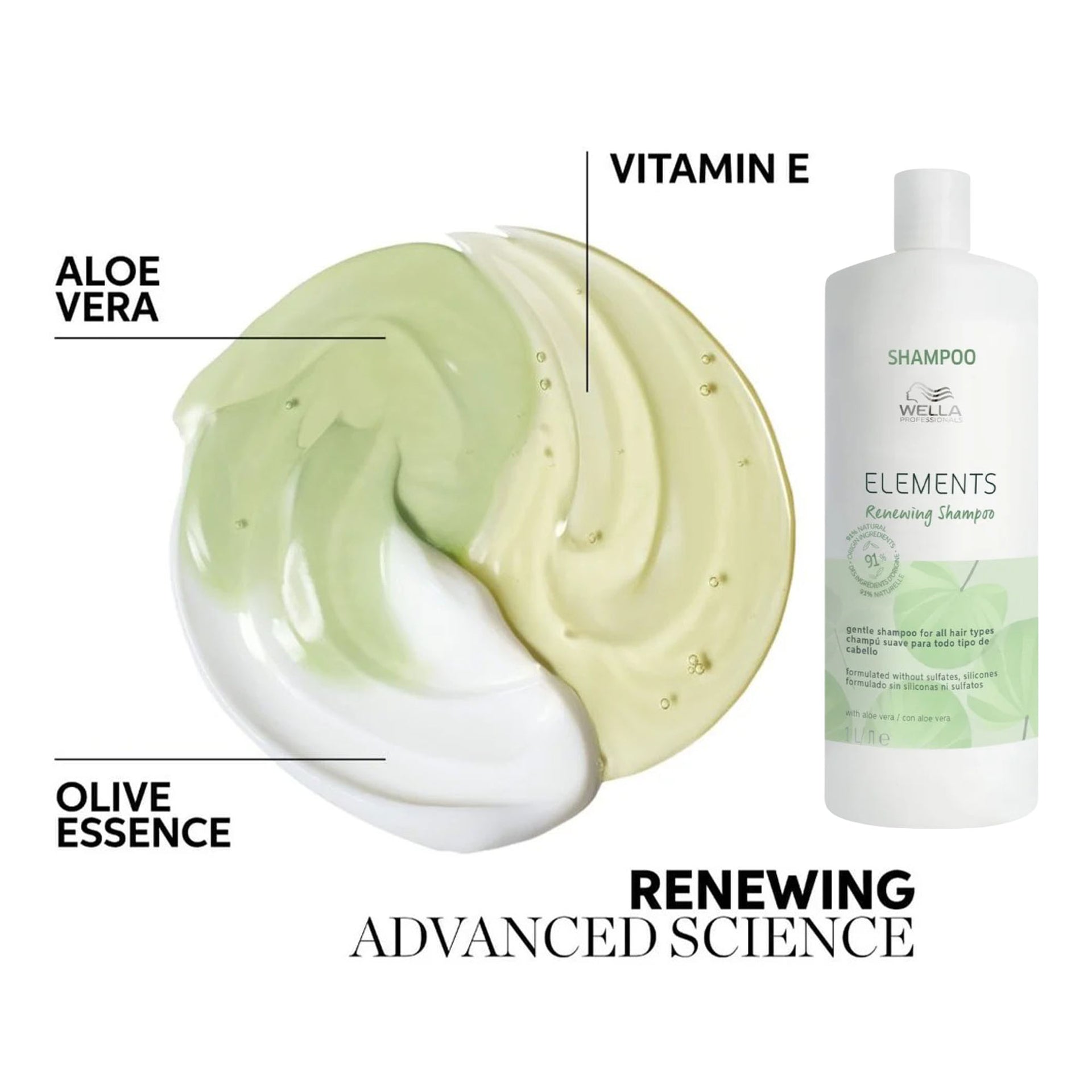 Apply to wet hair, gently massage into scalp and through to ends, allowing the gentle formula to cleanse for 1-2 minutes before rinsing thoroughly. For optimal results, follow with Elements Renewing Mask weekly; suitable for daily use due to its gentle, non-stripping formulation.