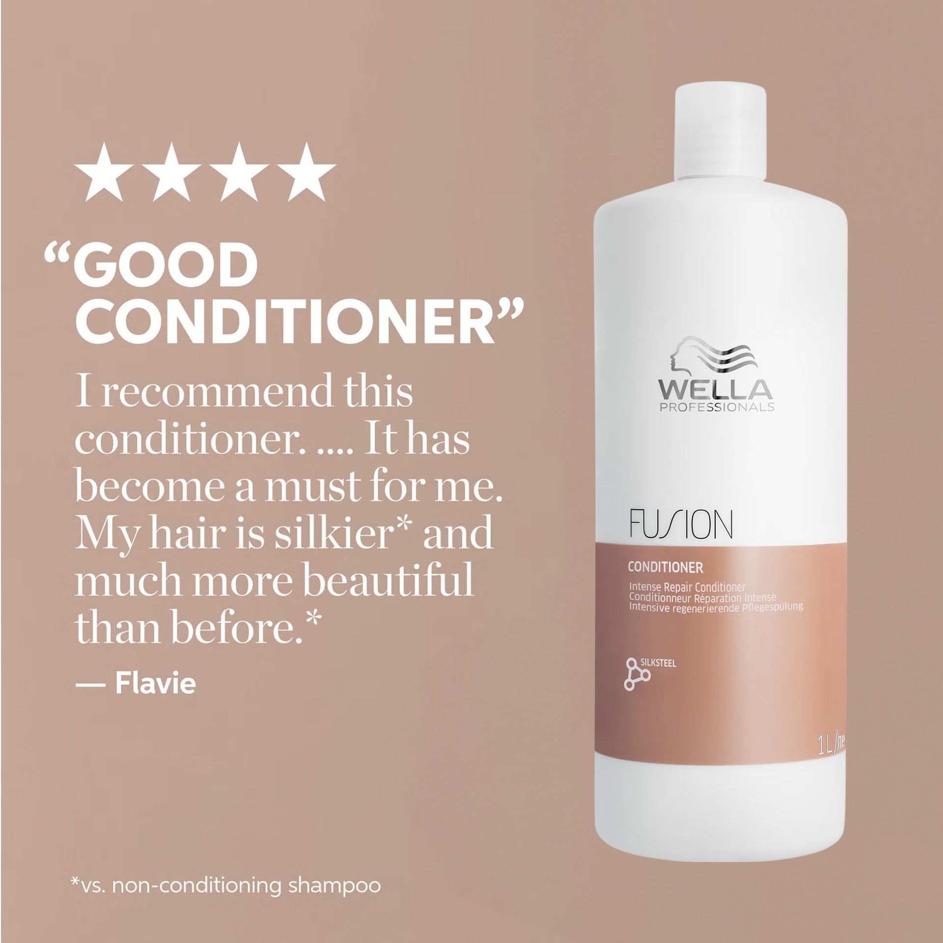 After cleansing with Fusion Intense Repair Shampoo, apply generously to mid-lengths and ends, leave for 2-5 minutes to allow the repair technology to penetrate, then rinse thoroughly. For enhanced results, use Fusion Intense Repair Mask 1-2 times weekly; consistent use delivers progressive improvement in hair strength and condition.