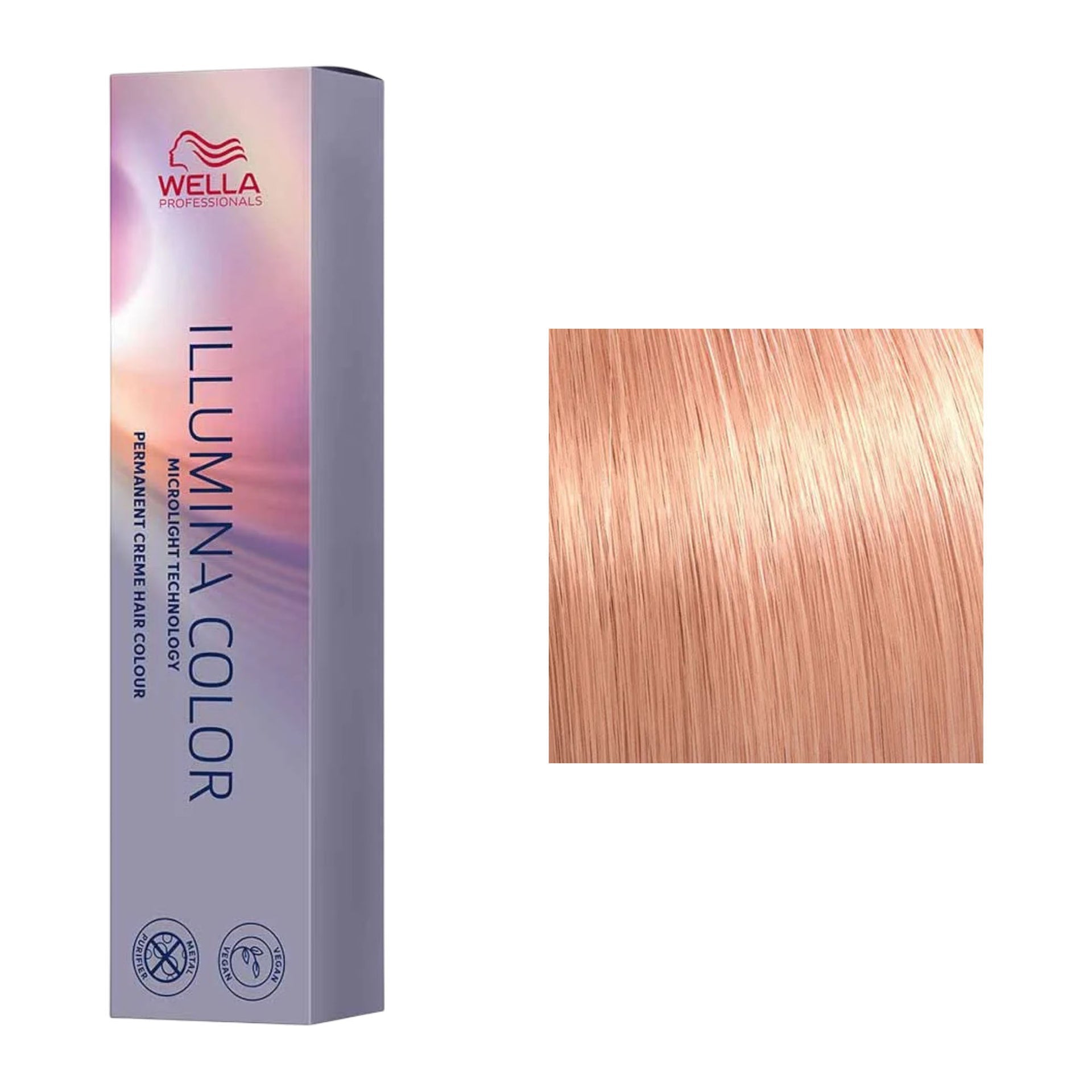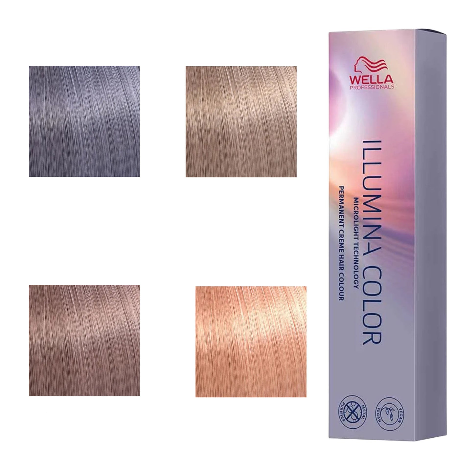 For best results, apply to pre-lightened or naturally light blonde hair. Mix in a 1:1 ratio (60ml Illumina Color + 60ml Welloxon Perfect developer) in a non-metallic bowl, then apply according to desired technique—full head application for uniform results or creative placement for dimensional effects. Process for 30-40 minutes at room temperature, then emulsify, rinse thoroughly and follow with appropriate aftercare.