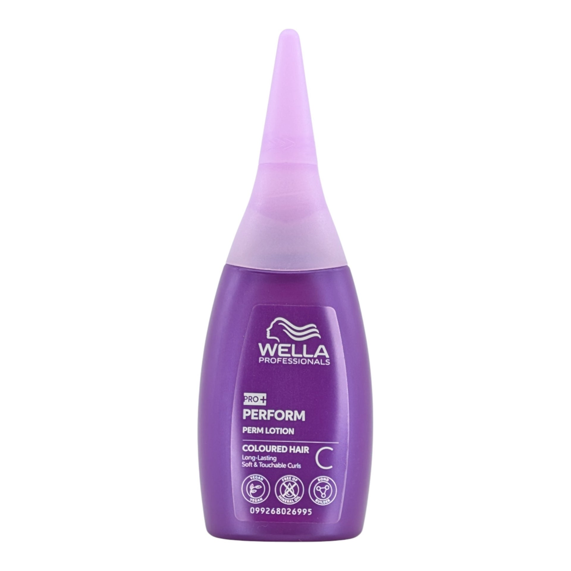 Create beautiful, long-lasting curls on treated hair with the Wella Professionals - Pro+ Perform C Coloured Hair Perm Lotion 75ml. This professional-grade alkaline perm liquid is specifically formulated as the 'C' variant, making it the ideal choice for clients with coloured or tinted hair. It is designed to deliver consistent, soft, and touchable curls while respecting the hair's condition. The formula ensures a natural-feeling result, enhancing the hair's texture and bounce. This lotion is suitable for all modern curling and wave techniques, providing reliable performance for salon specialists.