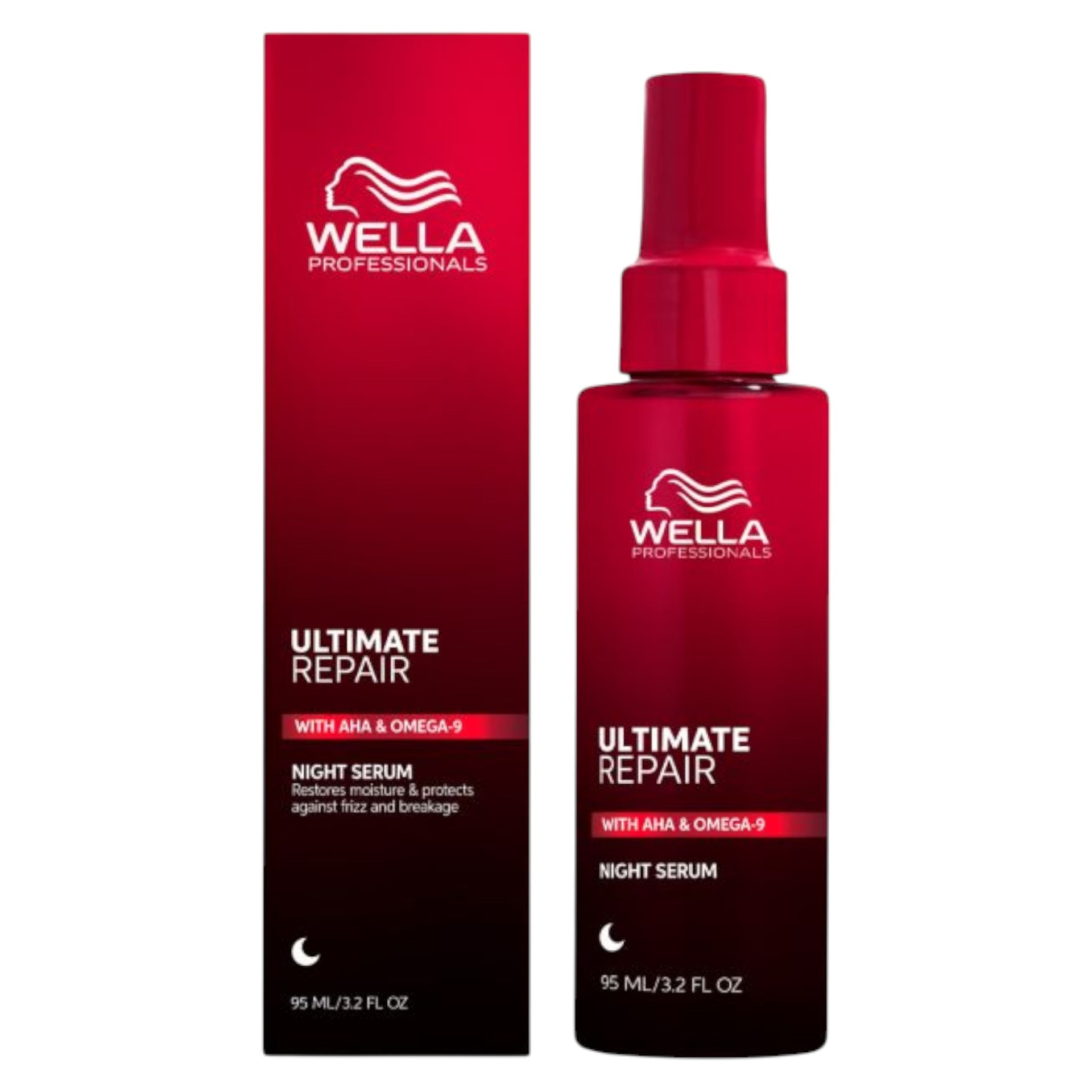 Wella Professionals Ultimate Repair Night Serum represents a revolutionary approach to hair repair, transforming your sleeping hours into an intensive treatment period for damaged, dry or breakage-prone hair. This innovative 95ml leave-in treatment features a patented technology with Omega-9 and AHA (Alpha Hydroxy Acid) that works whilst you sleep, effectively addressing multiple signs of damage including dullness, dryness, and breakage vulnerability. Unlike conventional leave-in treatments that can transfer to pillowcases or create morning tangles, this sophisticated formula incorporates defense polymers specifically designed to protect hair from night stressors like pillow friction, reducing the tangling and mechanical damage that typically occurs during sleep. The lightweight yet powerful gel texture distributes evenly through hair without creating stickiness or residue, allowing for comfortable sleep whilst delivering 8 hours of continuous nourishment and repair to depleted hair structures.